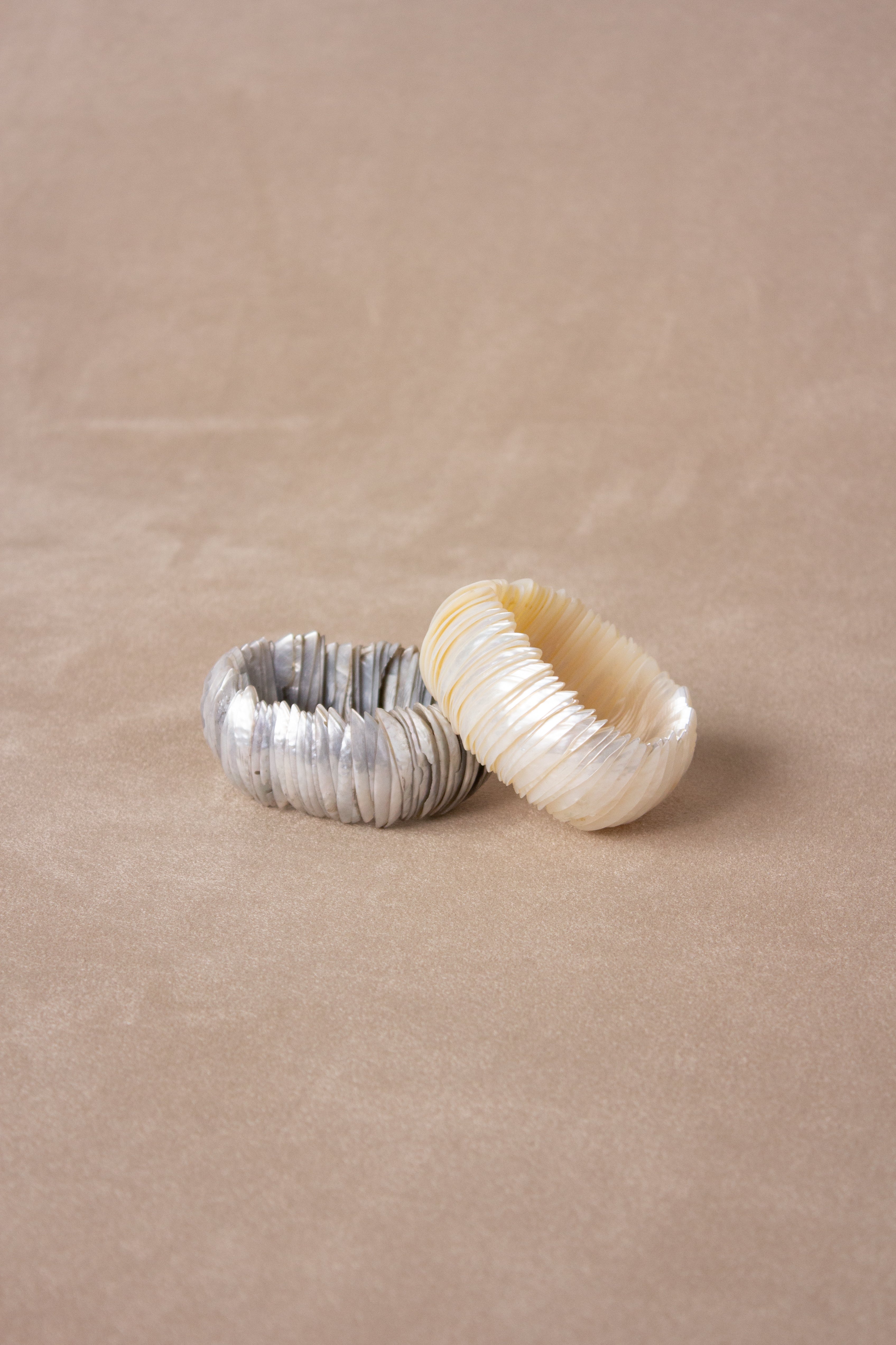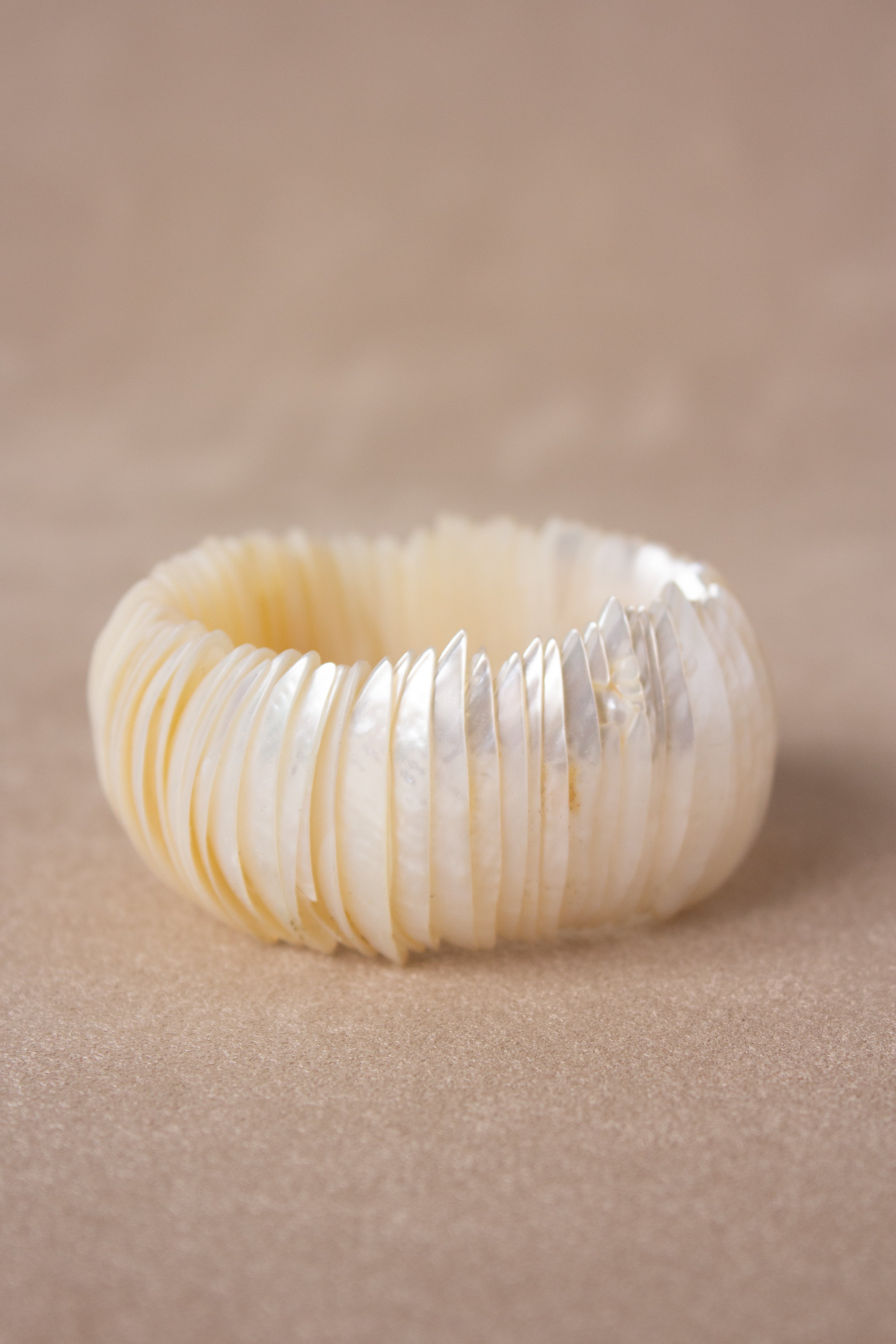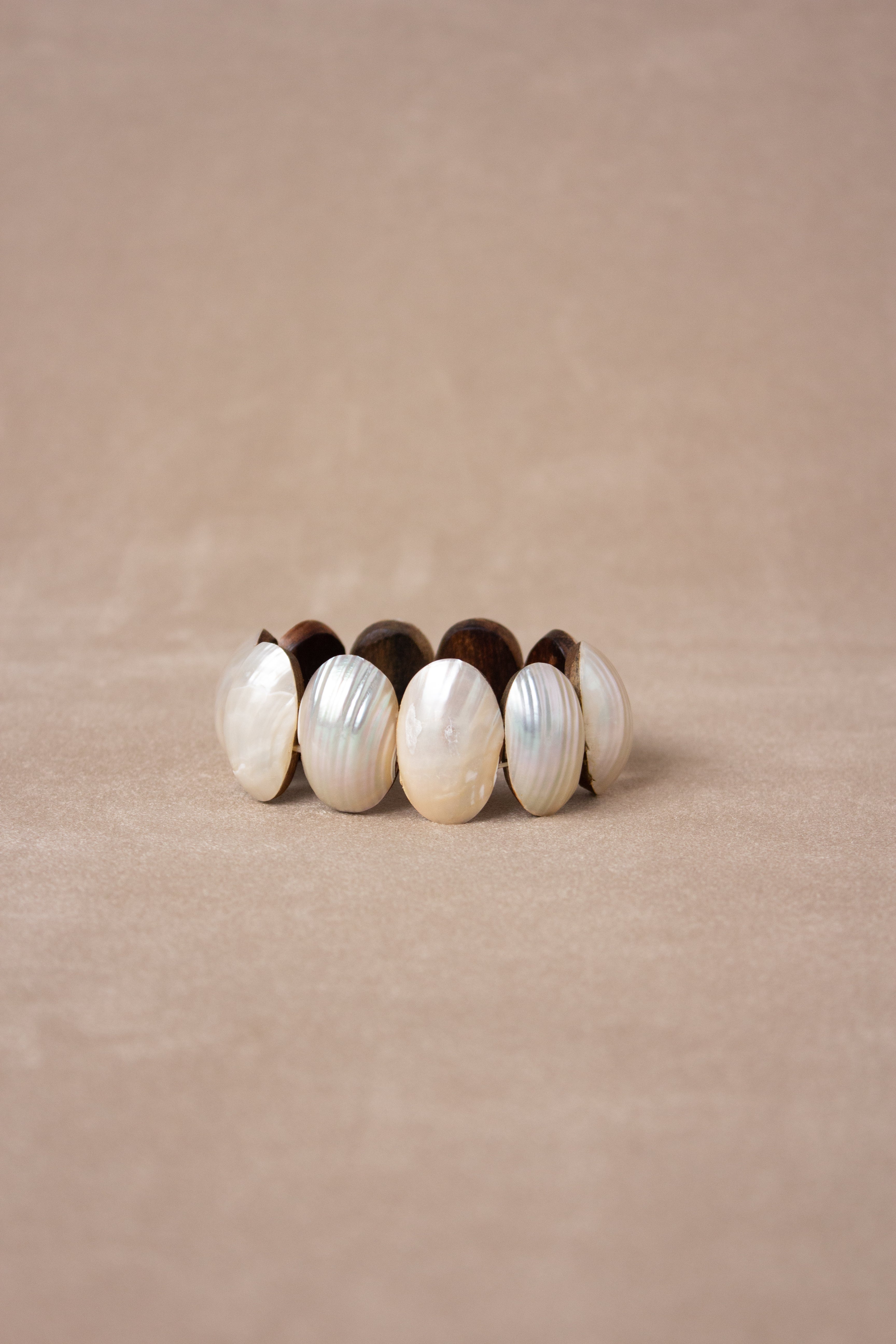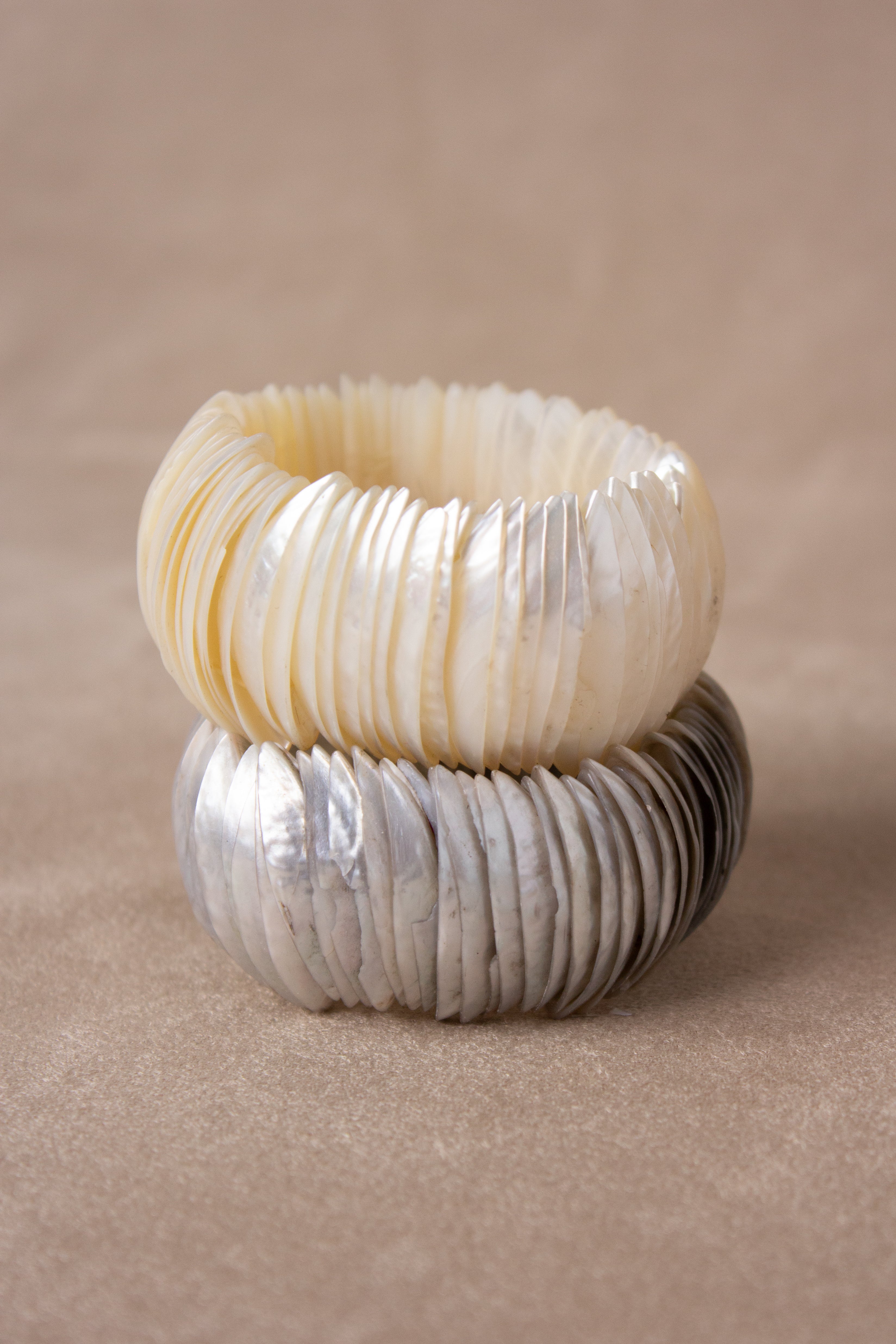 Vintage Shell Cluster Cuff Bracelets - Ivory & Oyster