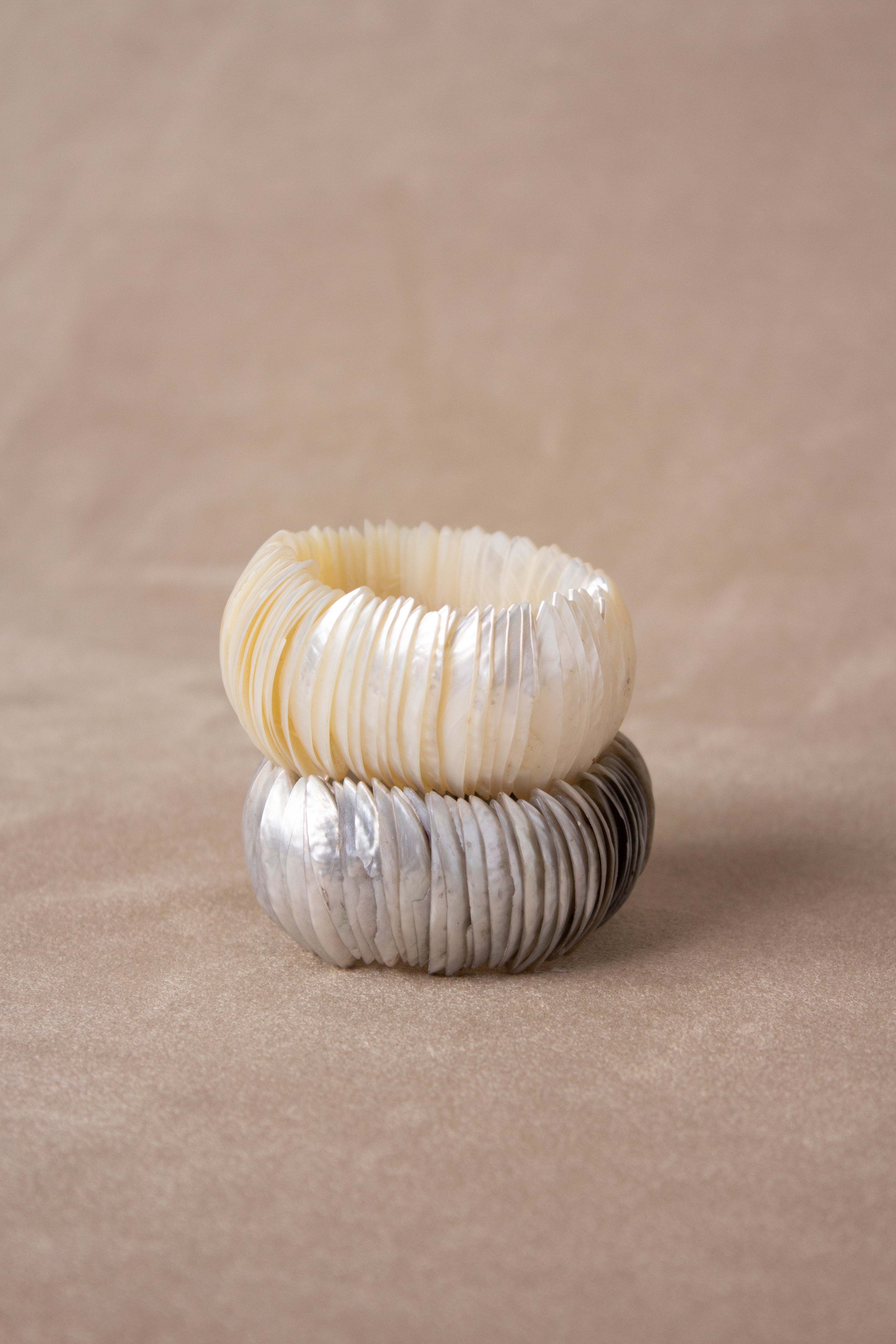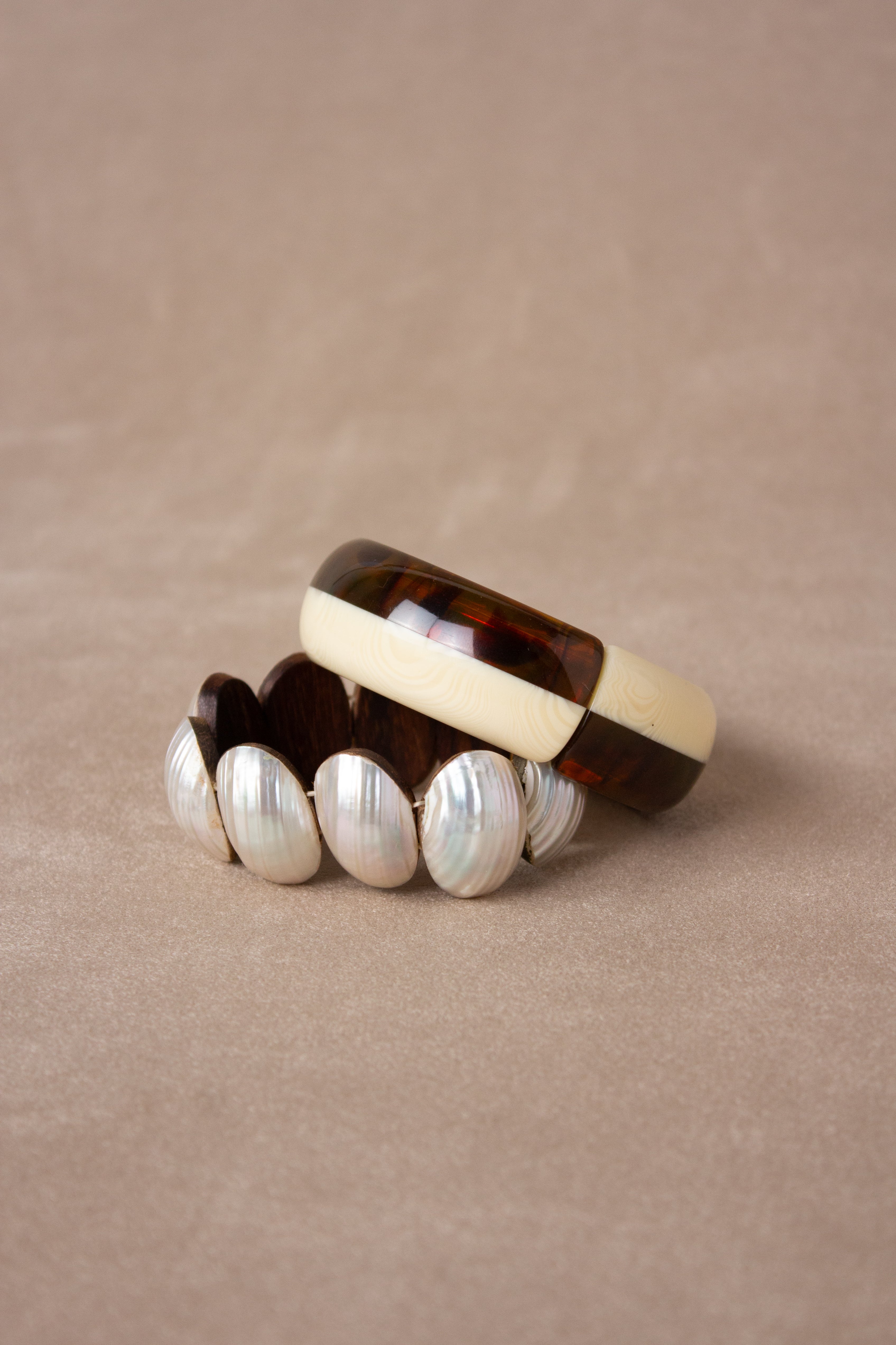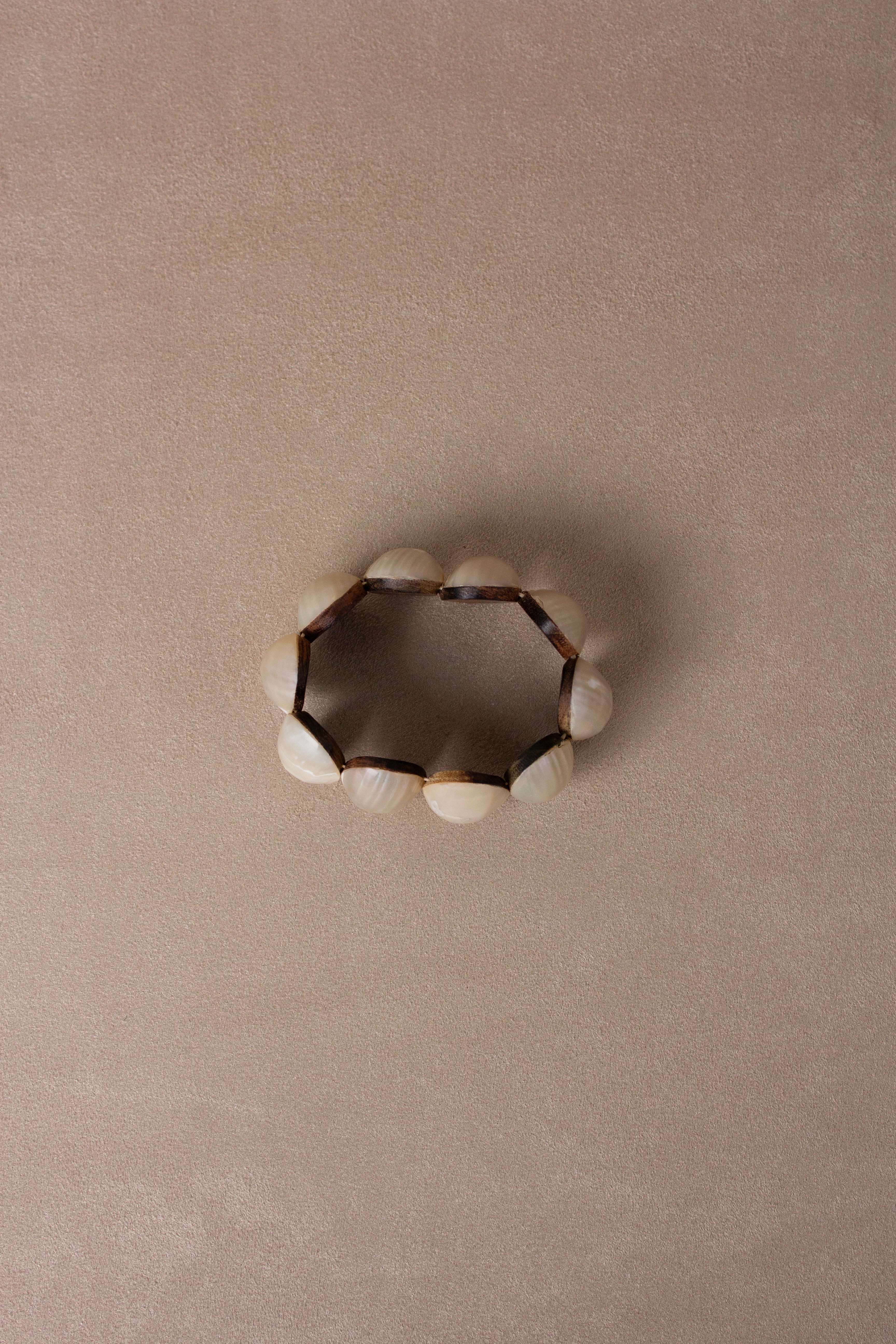 Vintage Shell Cluster Cuff Bracelets - Ivory & Oyster