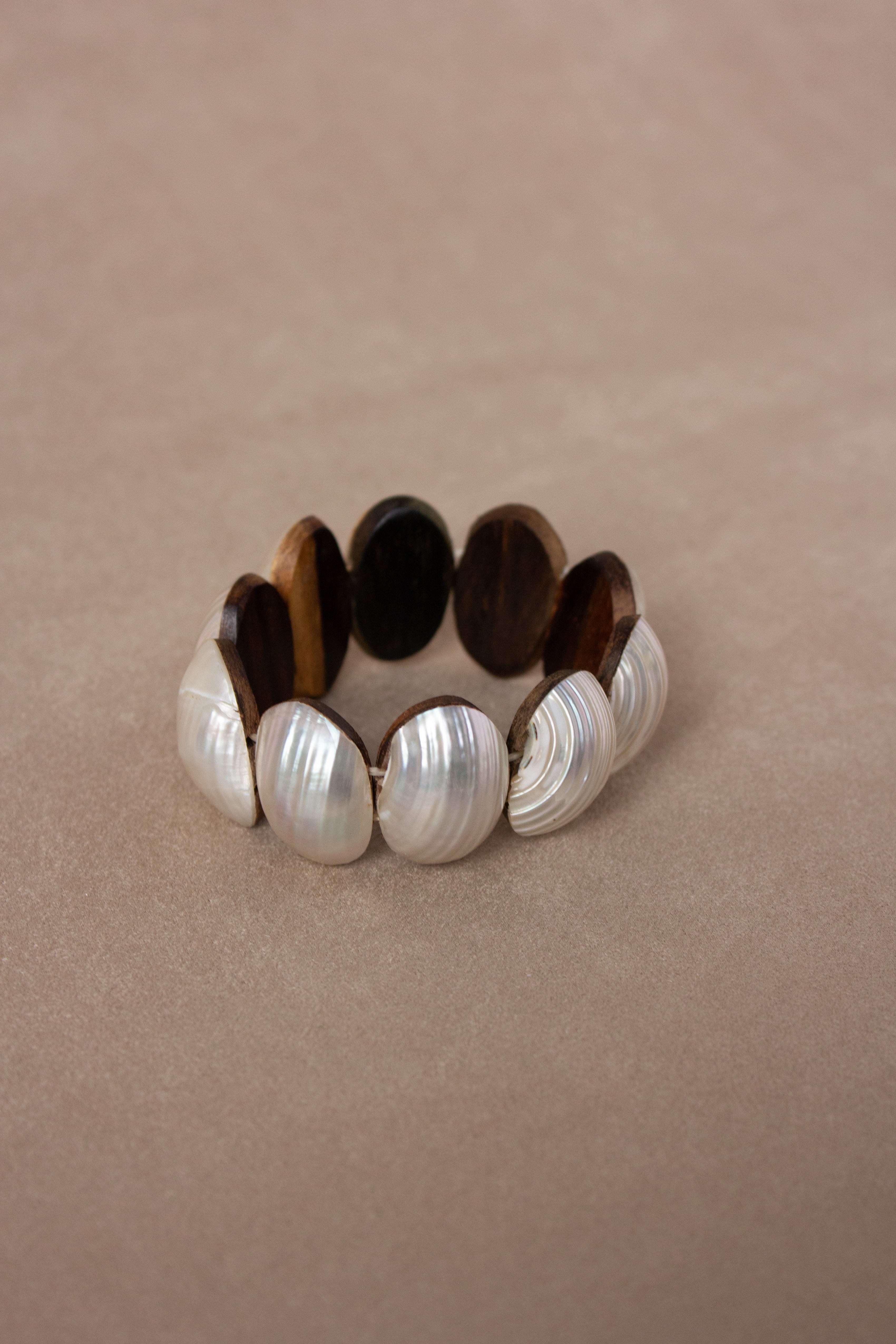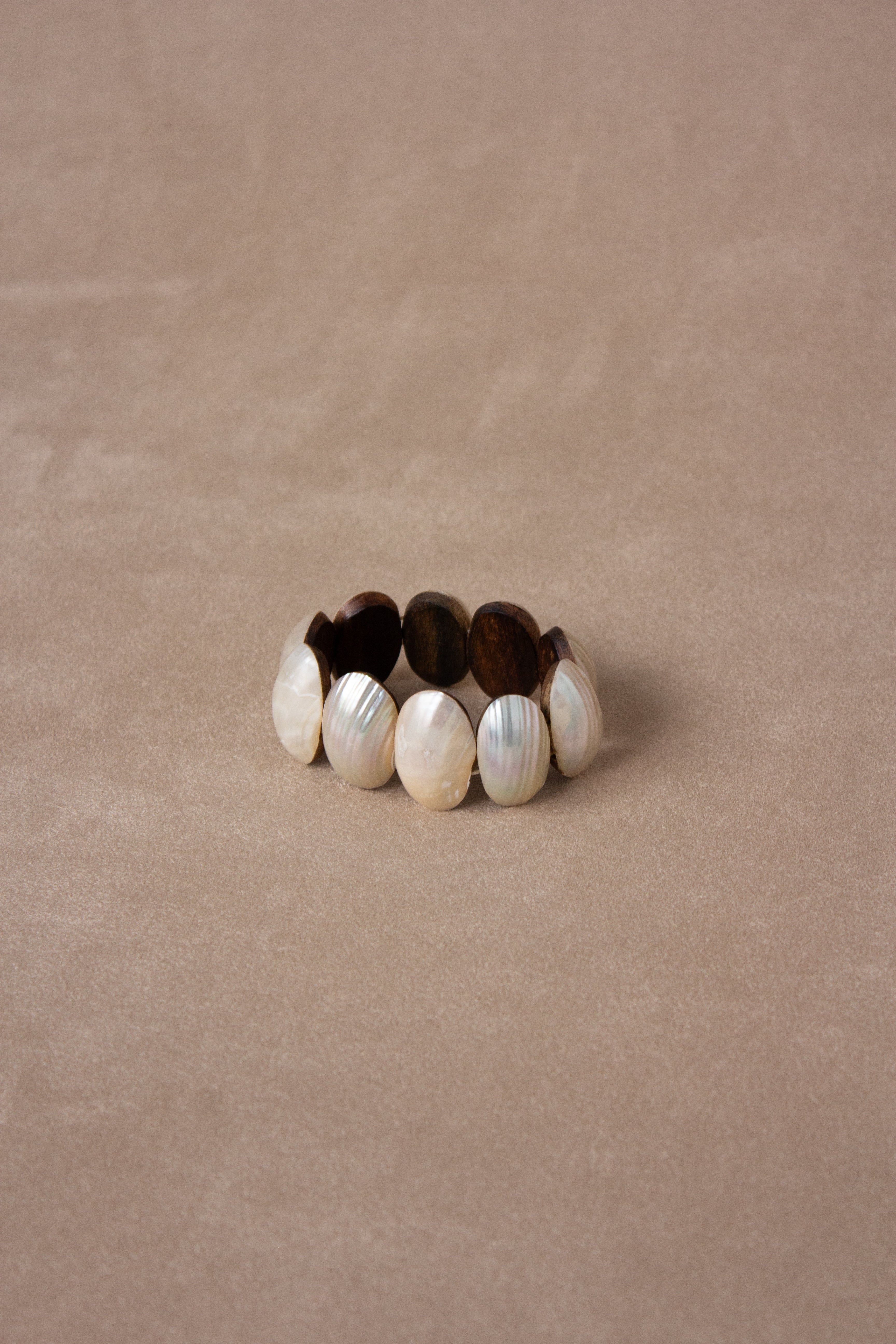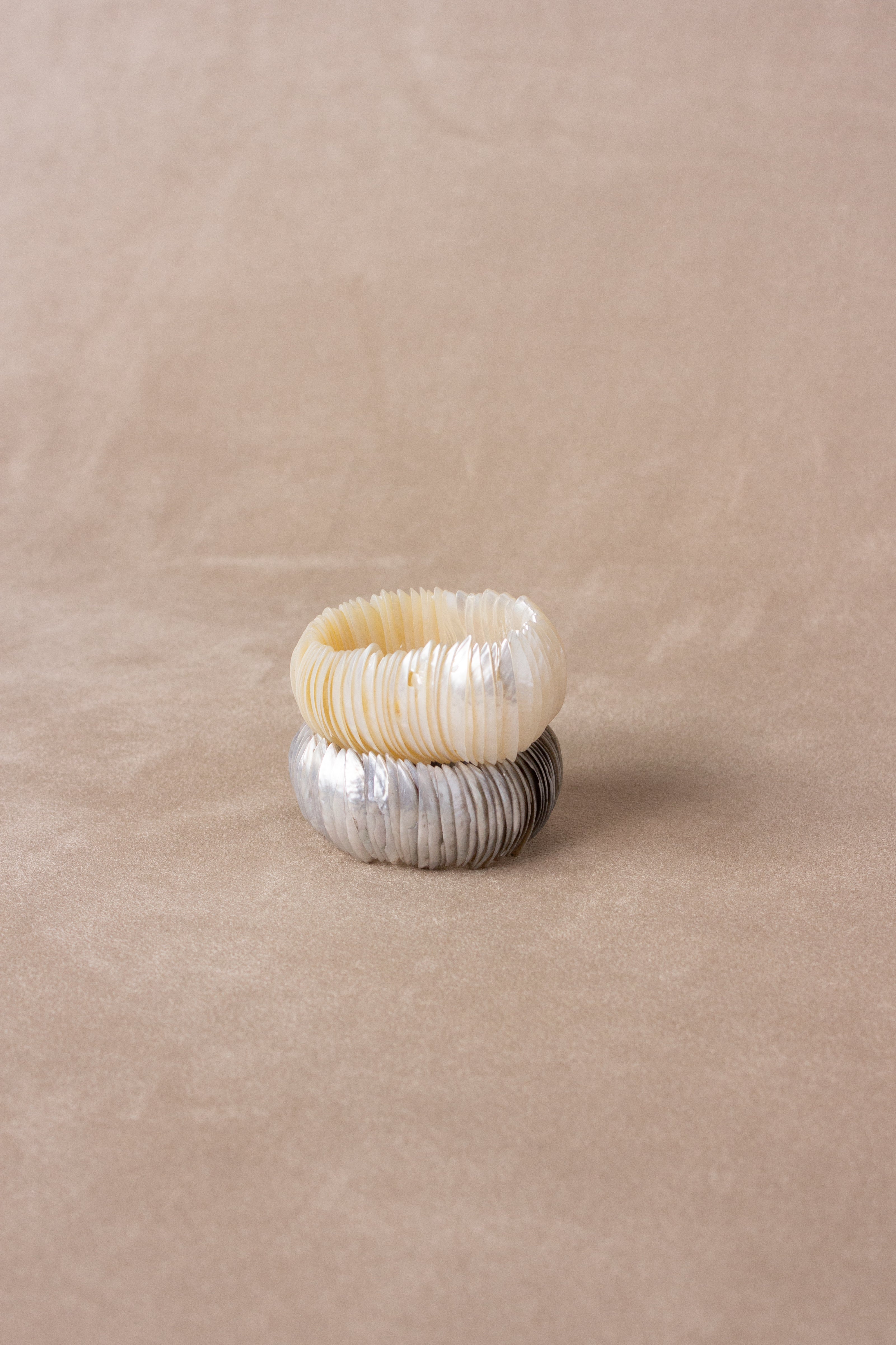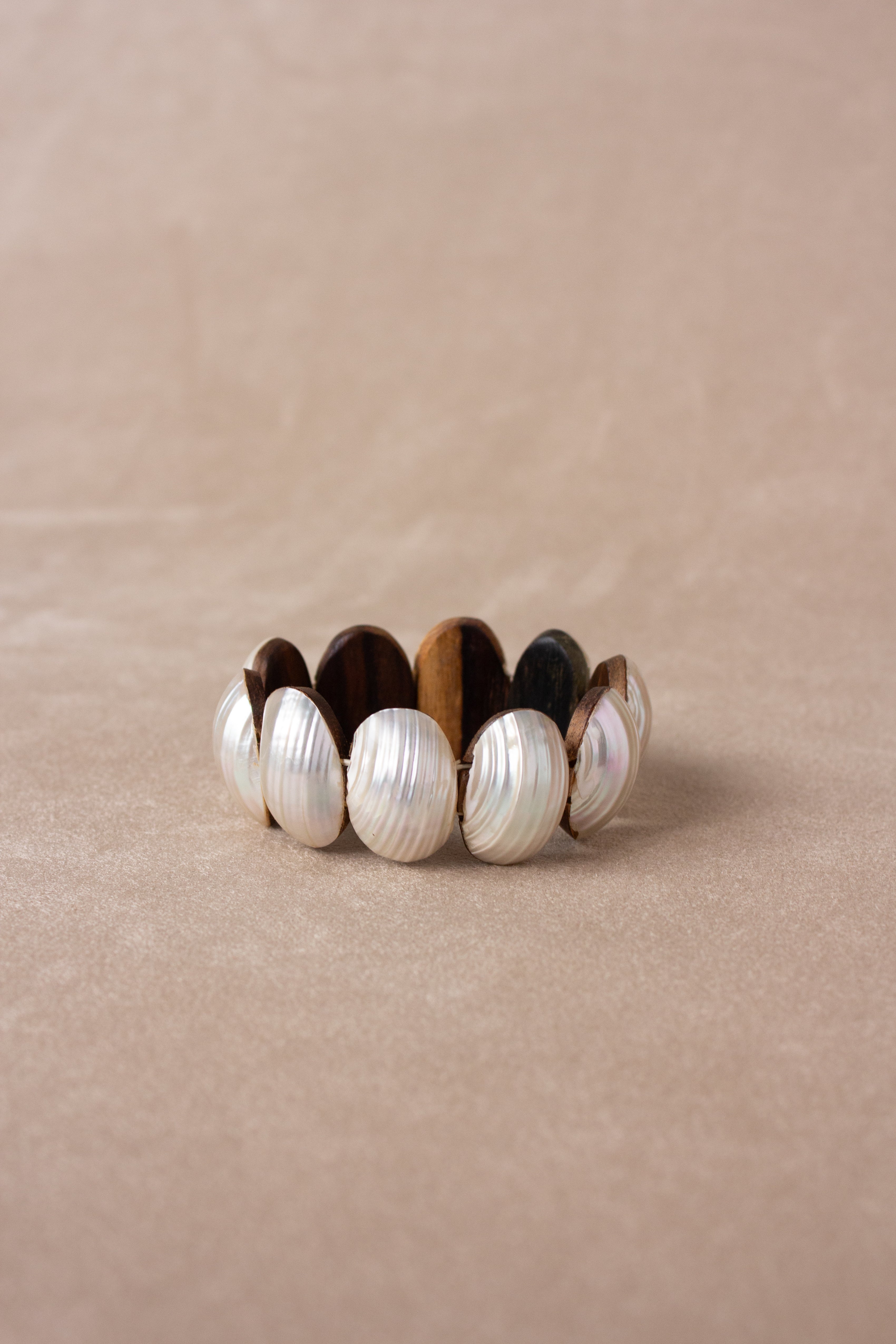 Vintage Shell Cluster Cuff Bracelets - Ivory & Oyster
