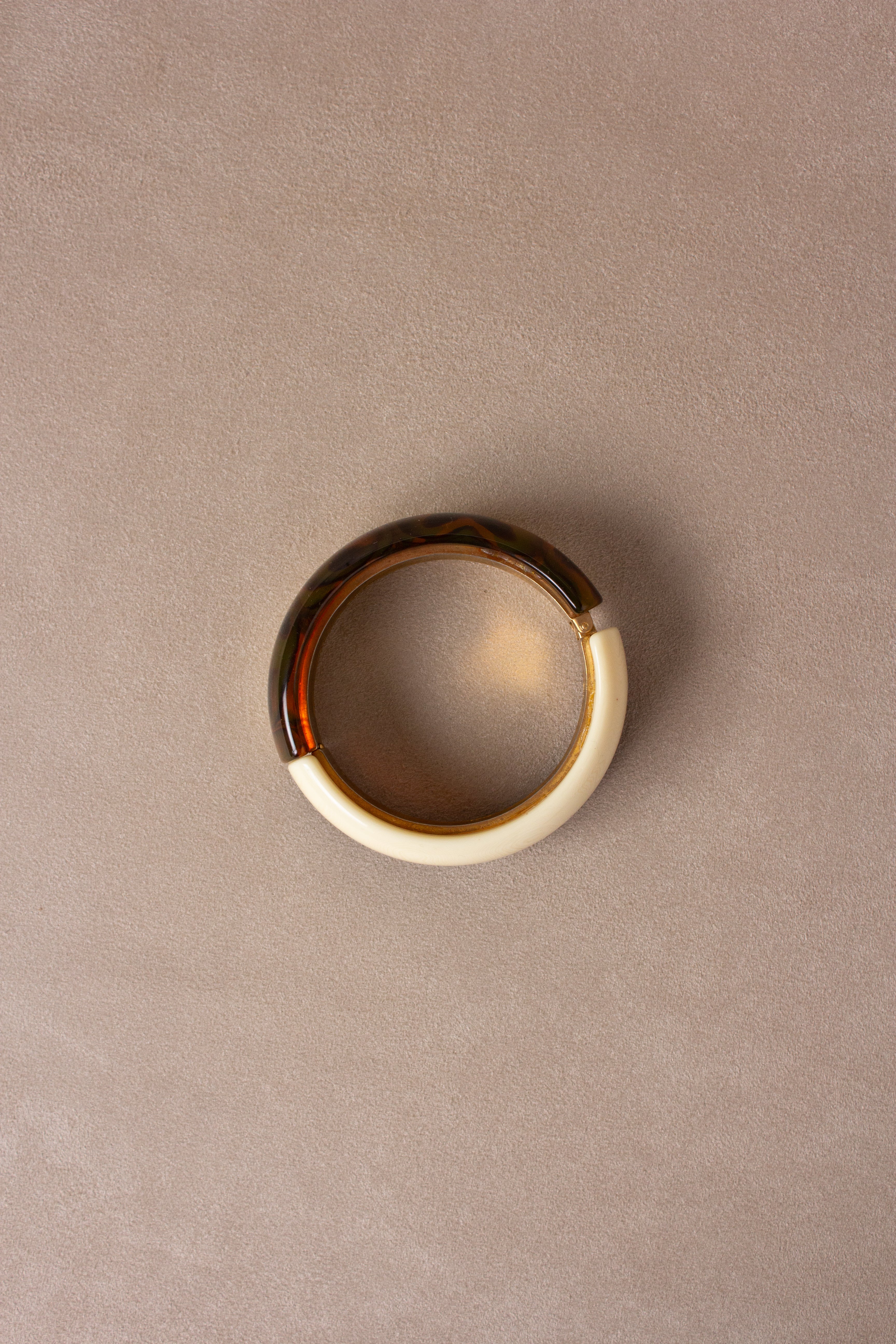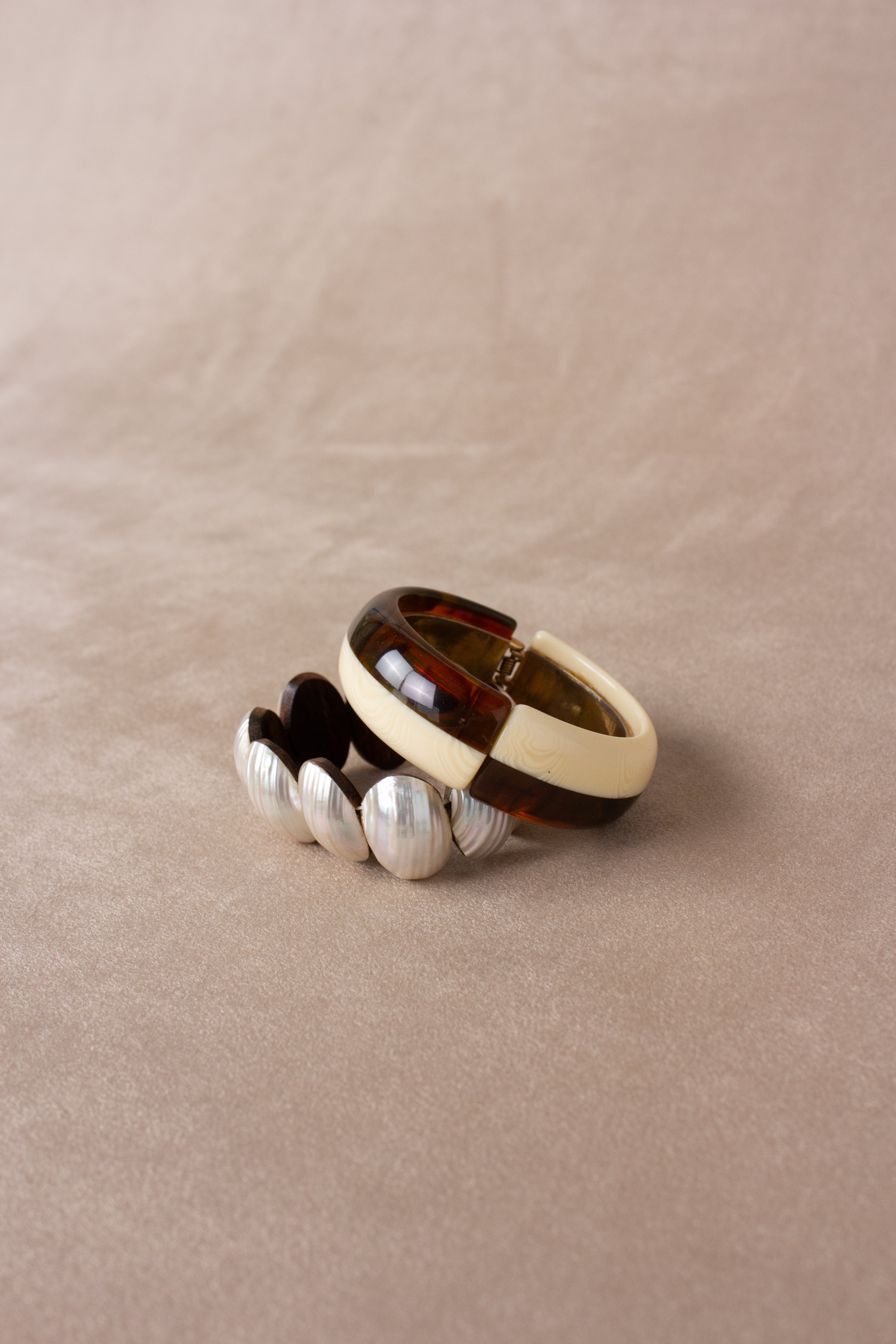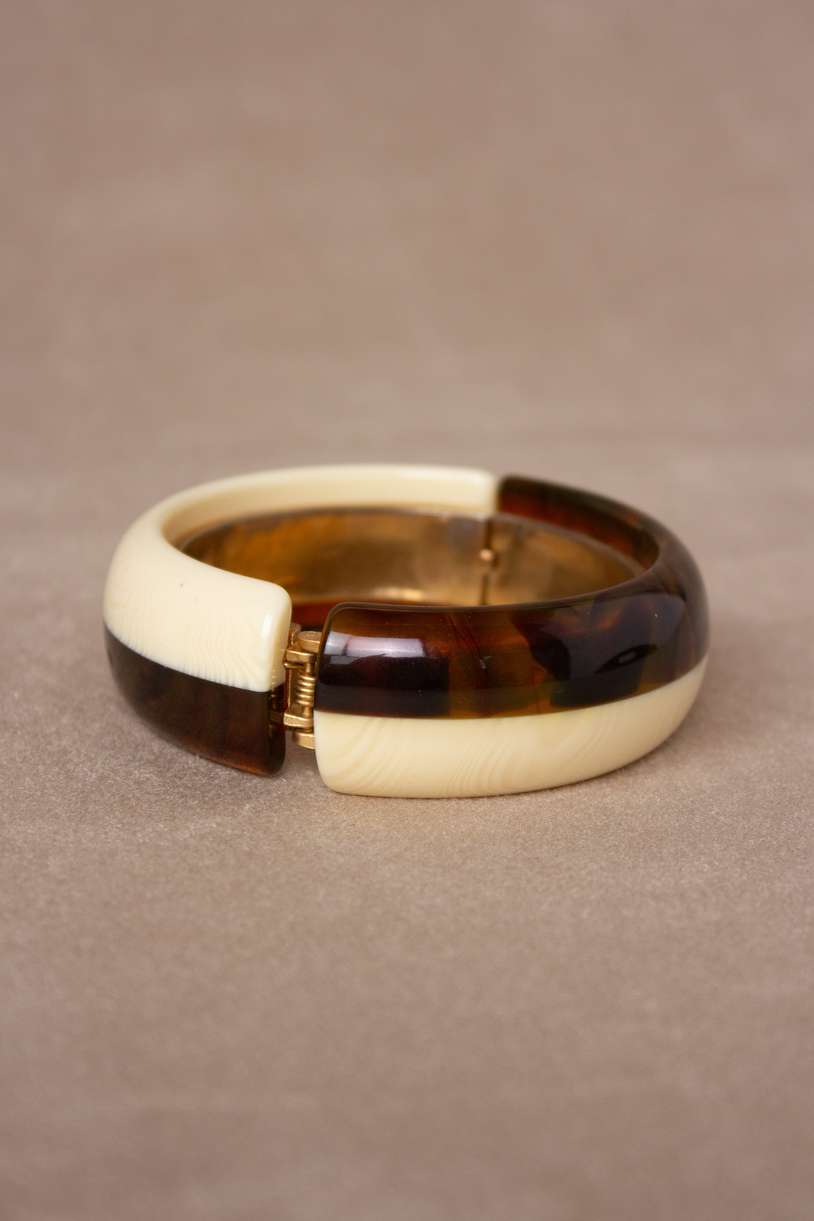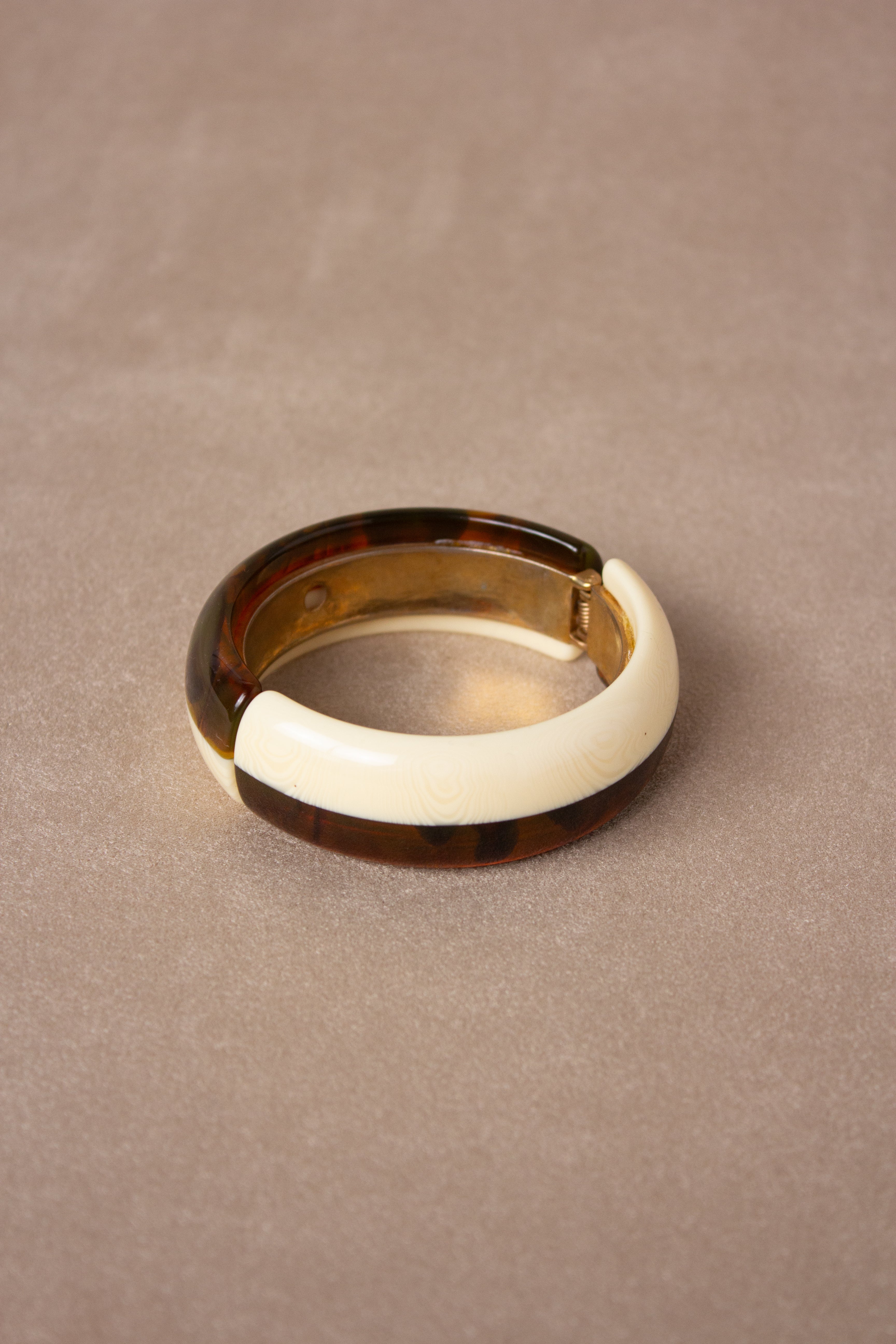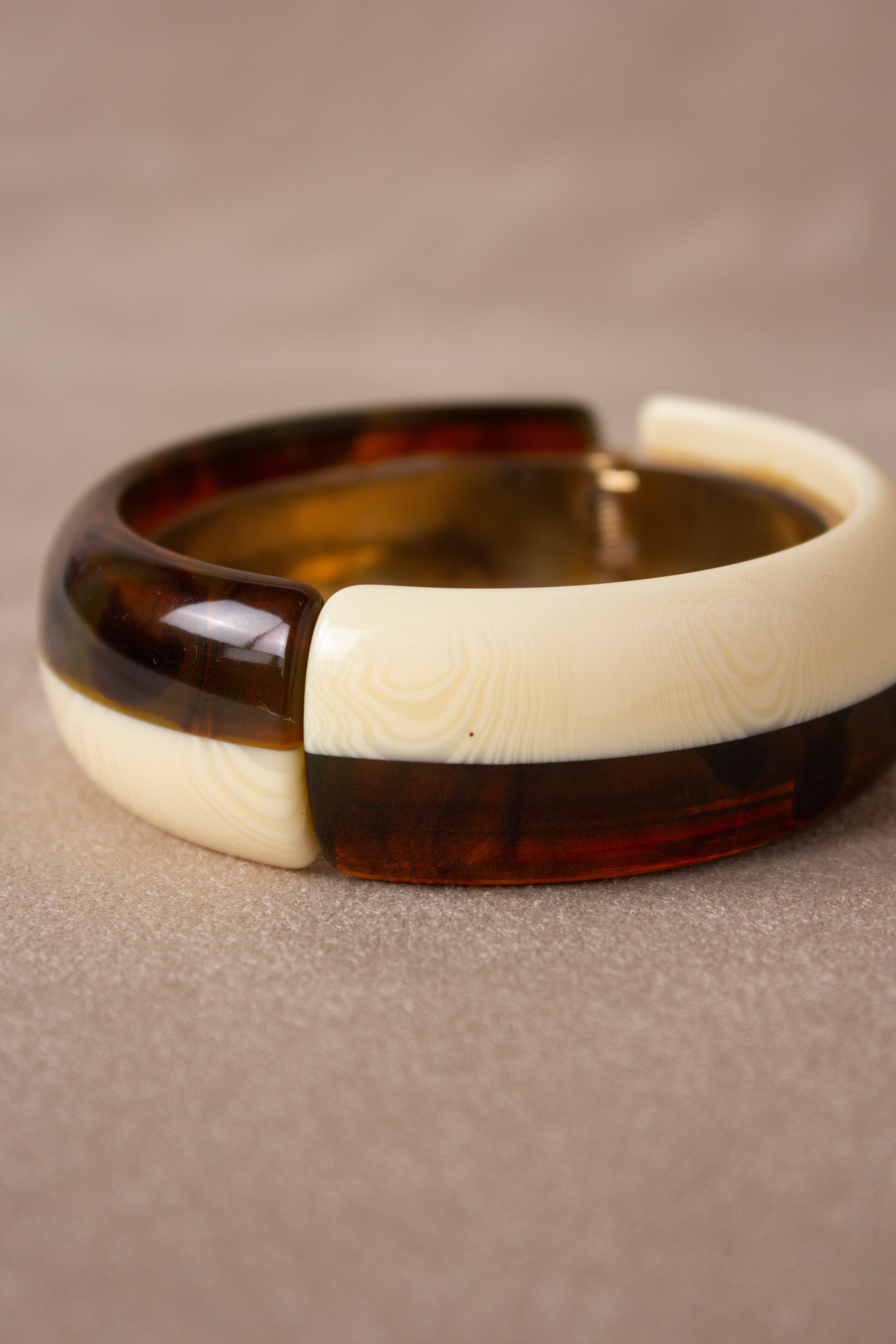Vintage Cream & Tortoise Lucite Tiled Cuff