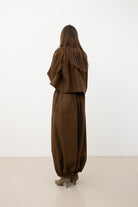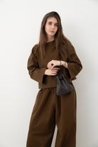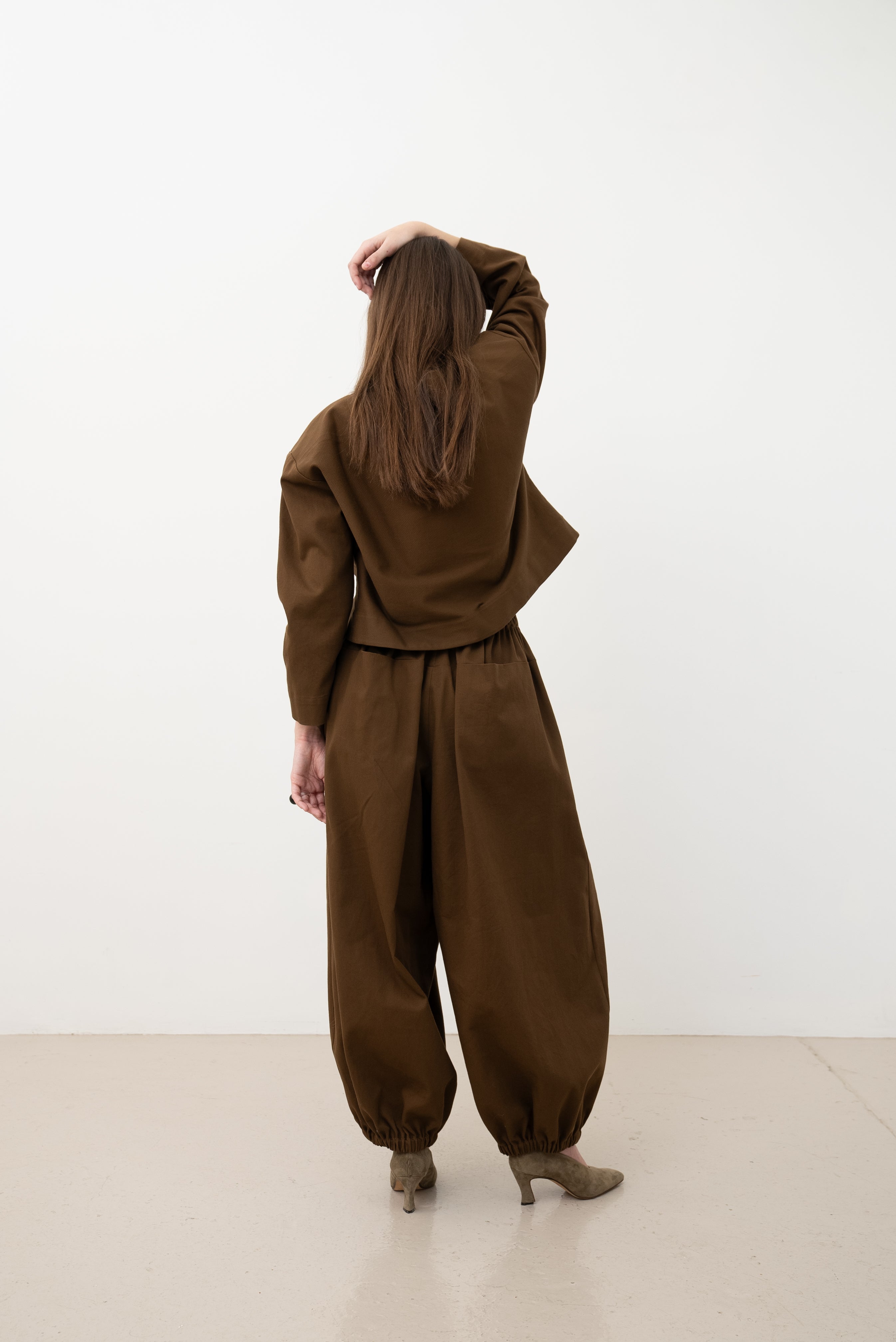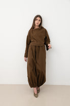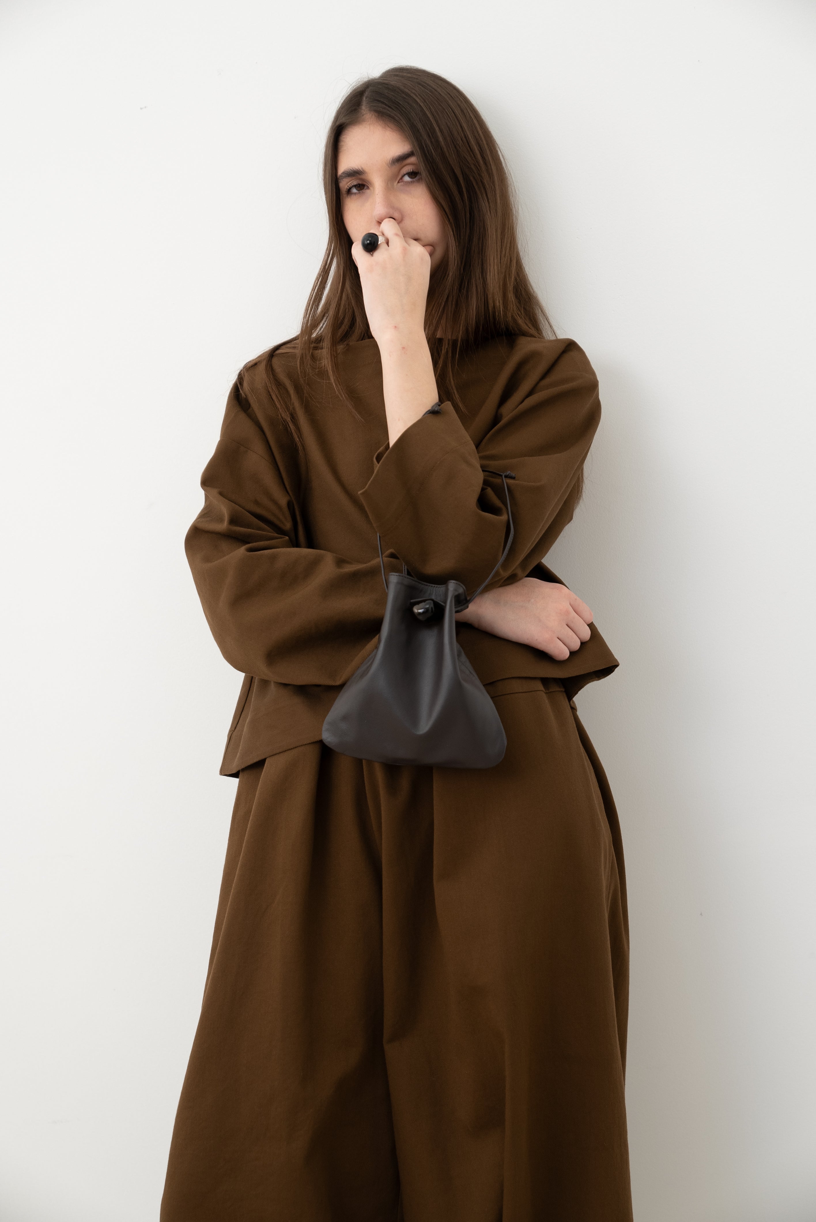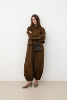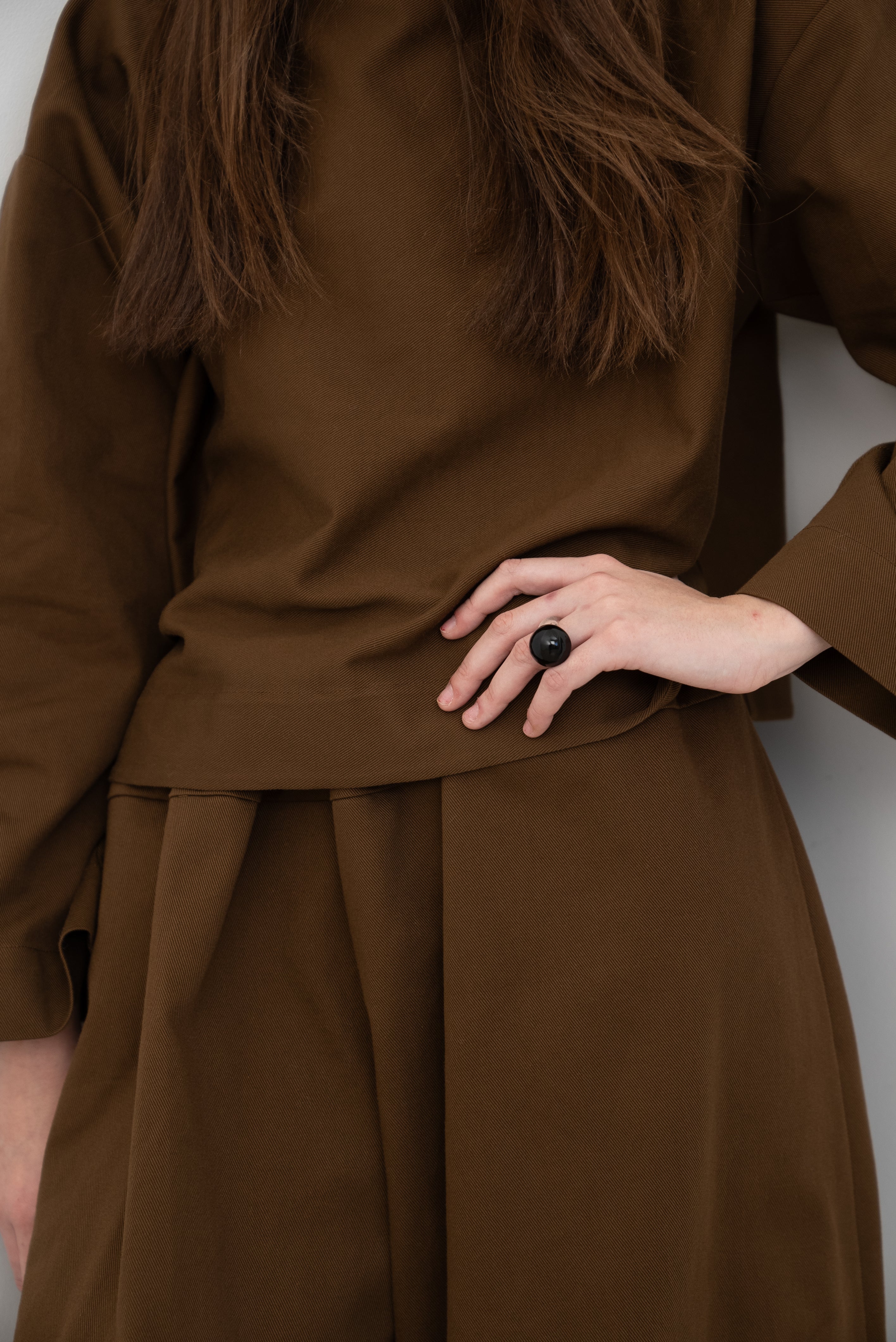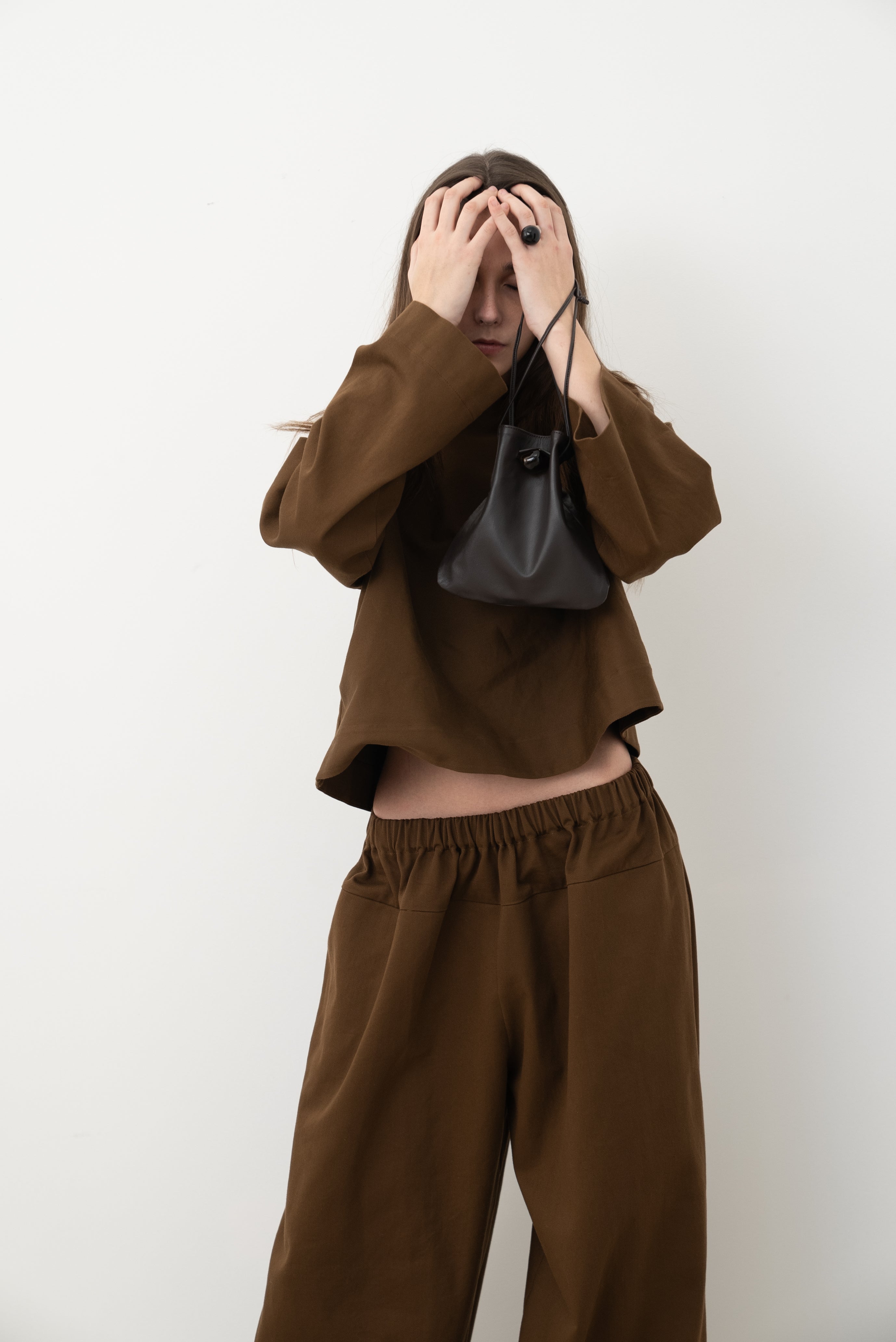Description: A boxy boatneck top featuring a dropped shoulder and oversized drape.