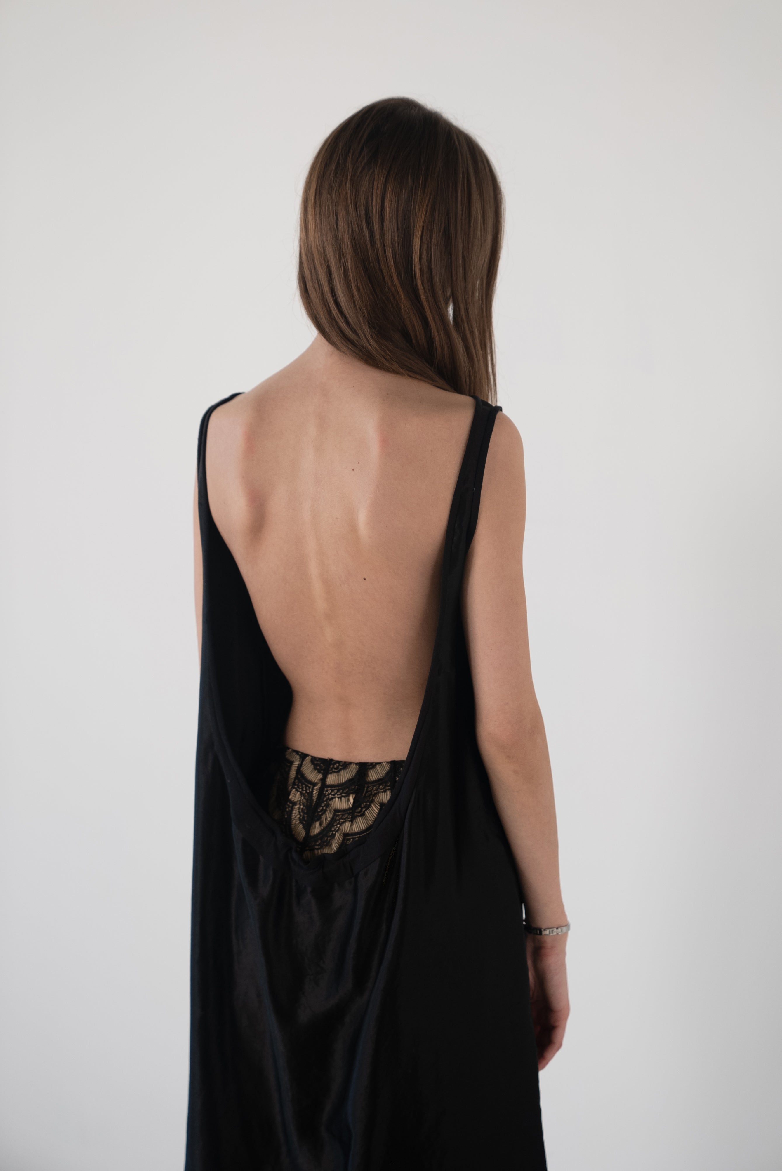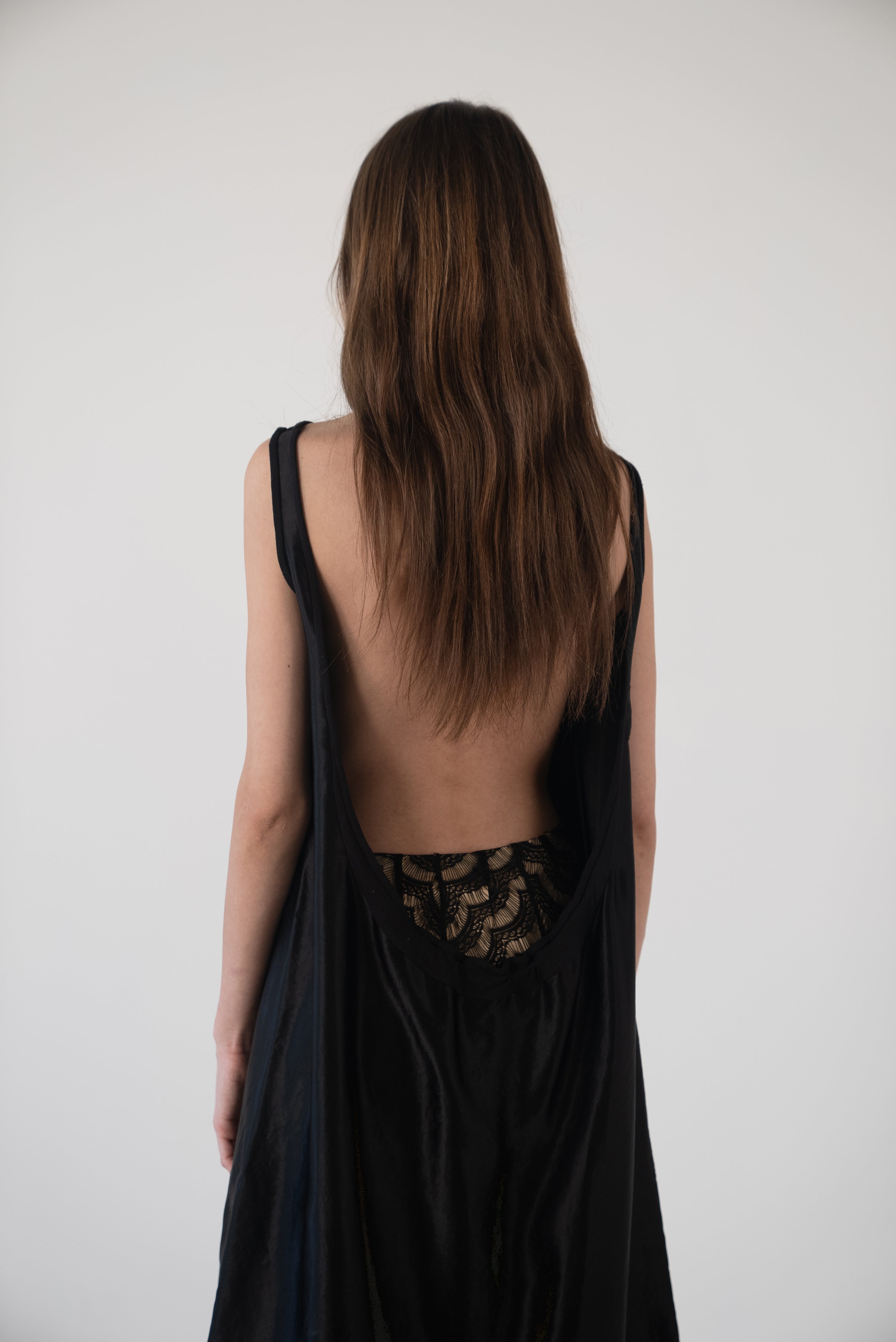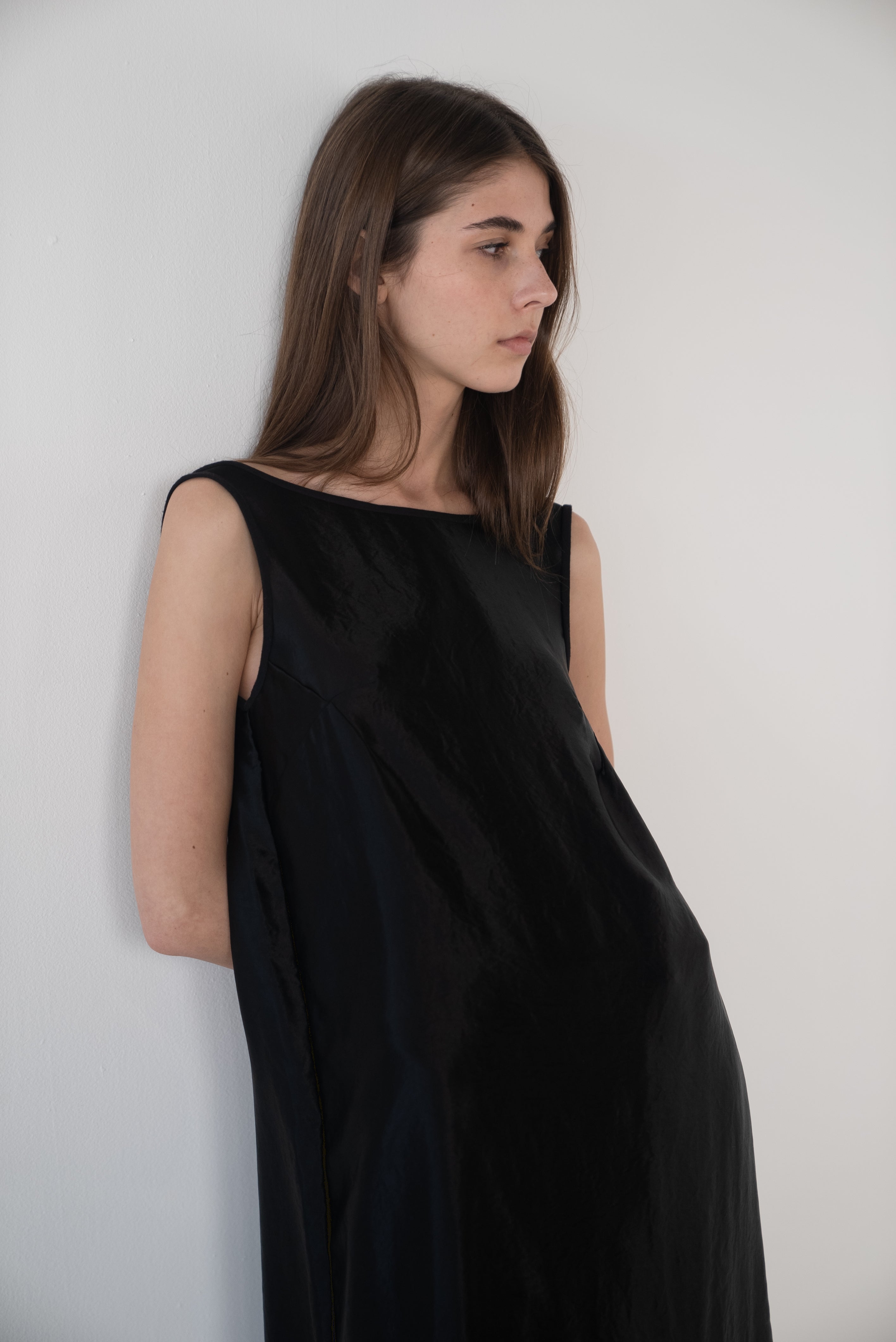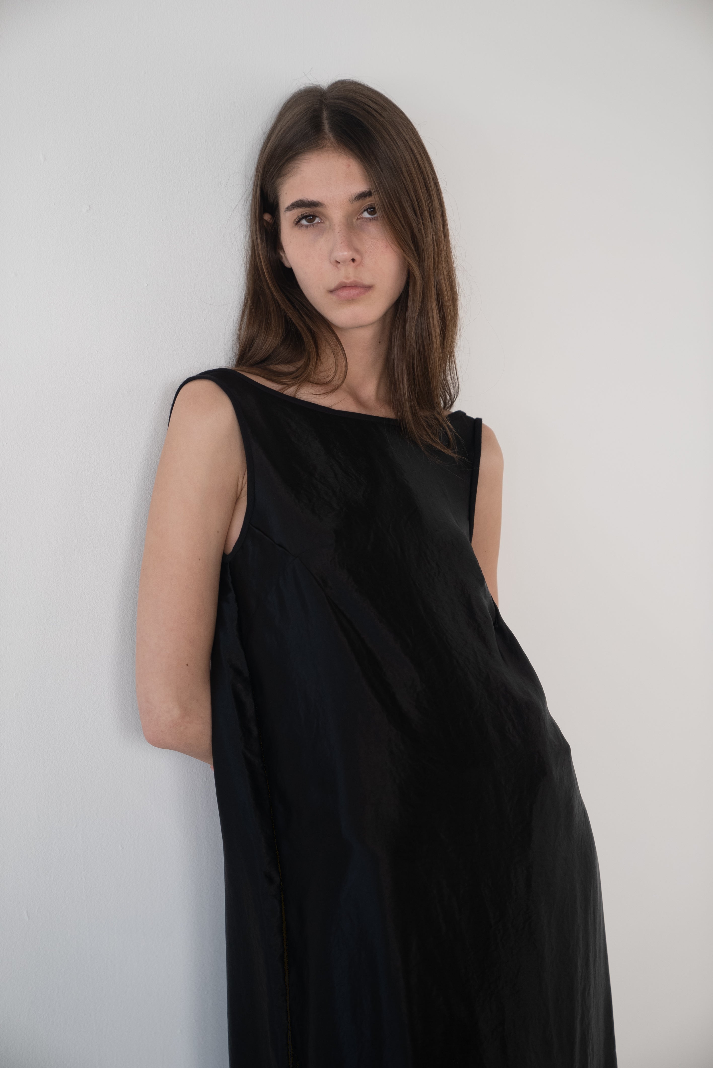 Description: A boatneck dress with a low cut back. Gather to your liking.