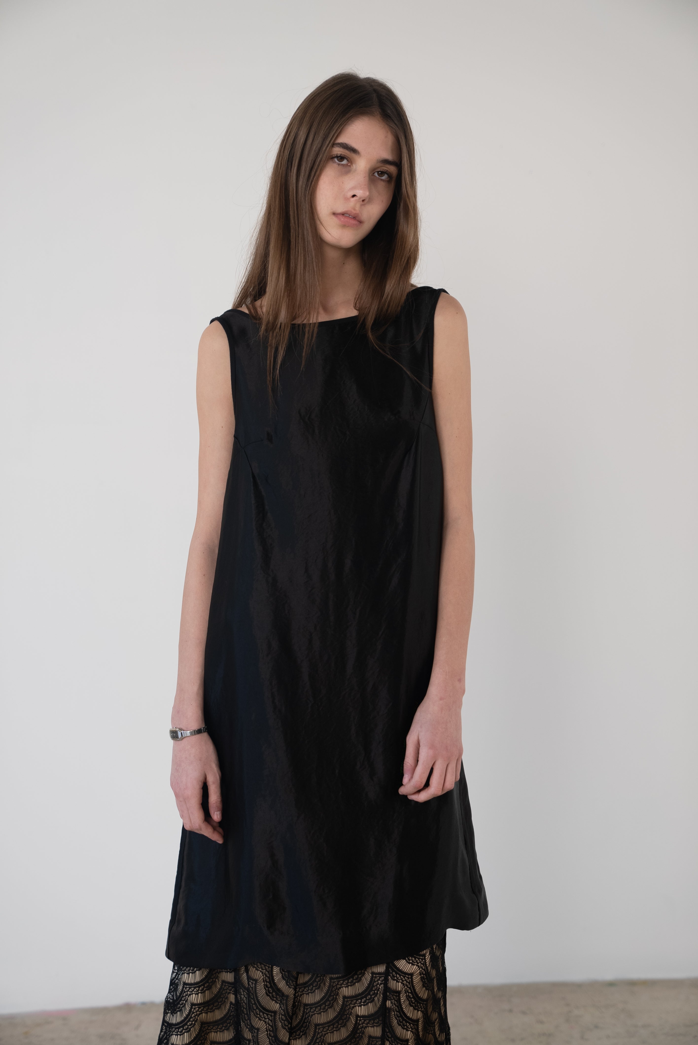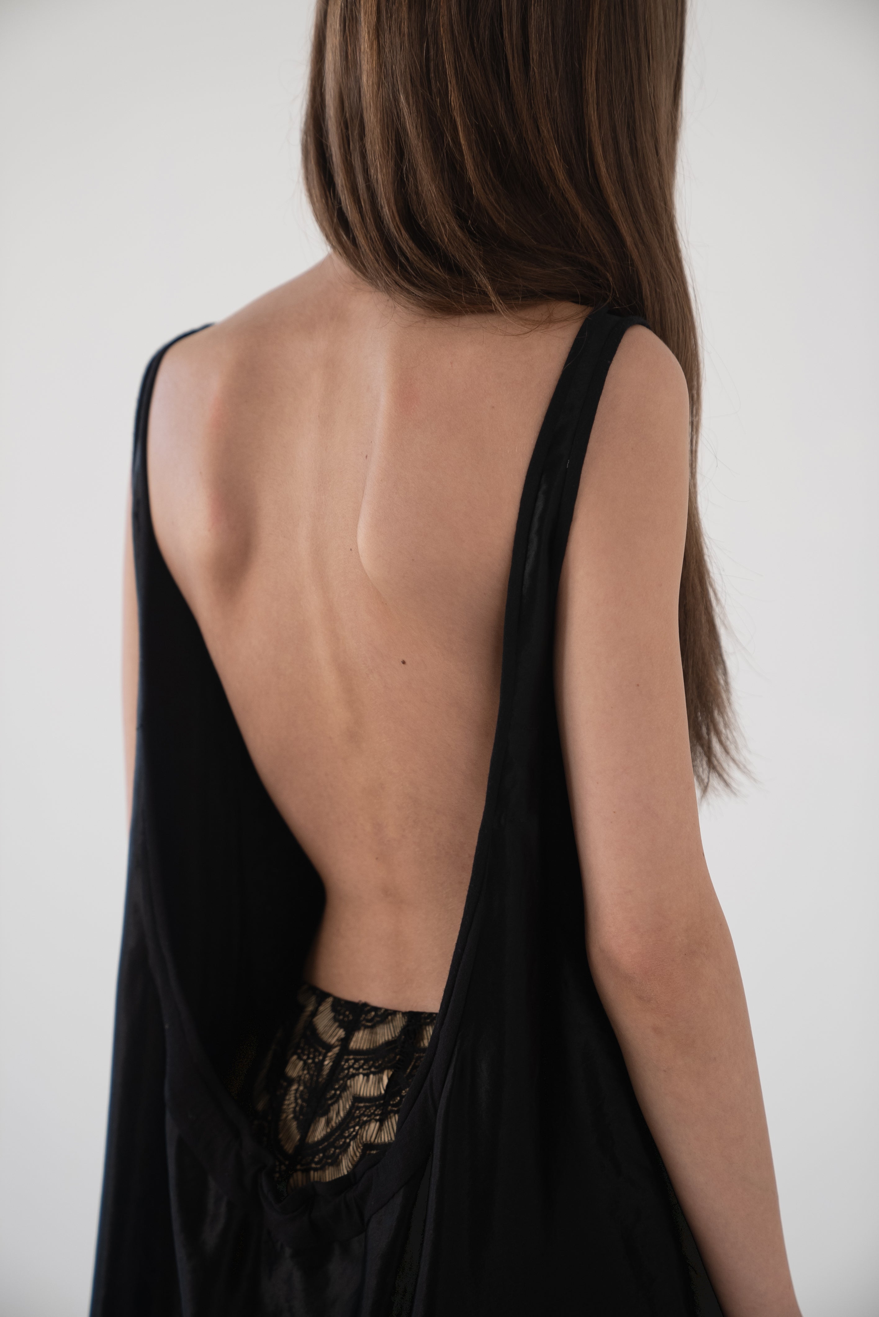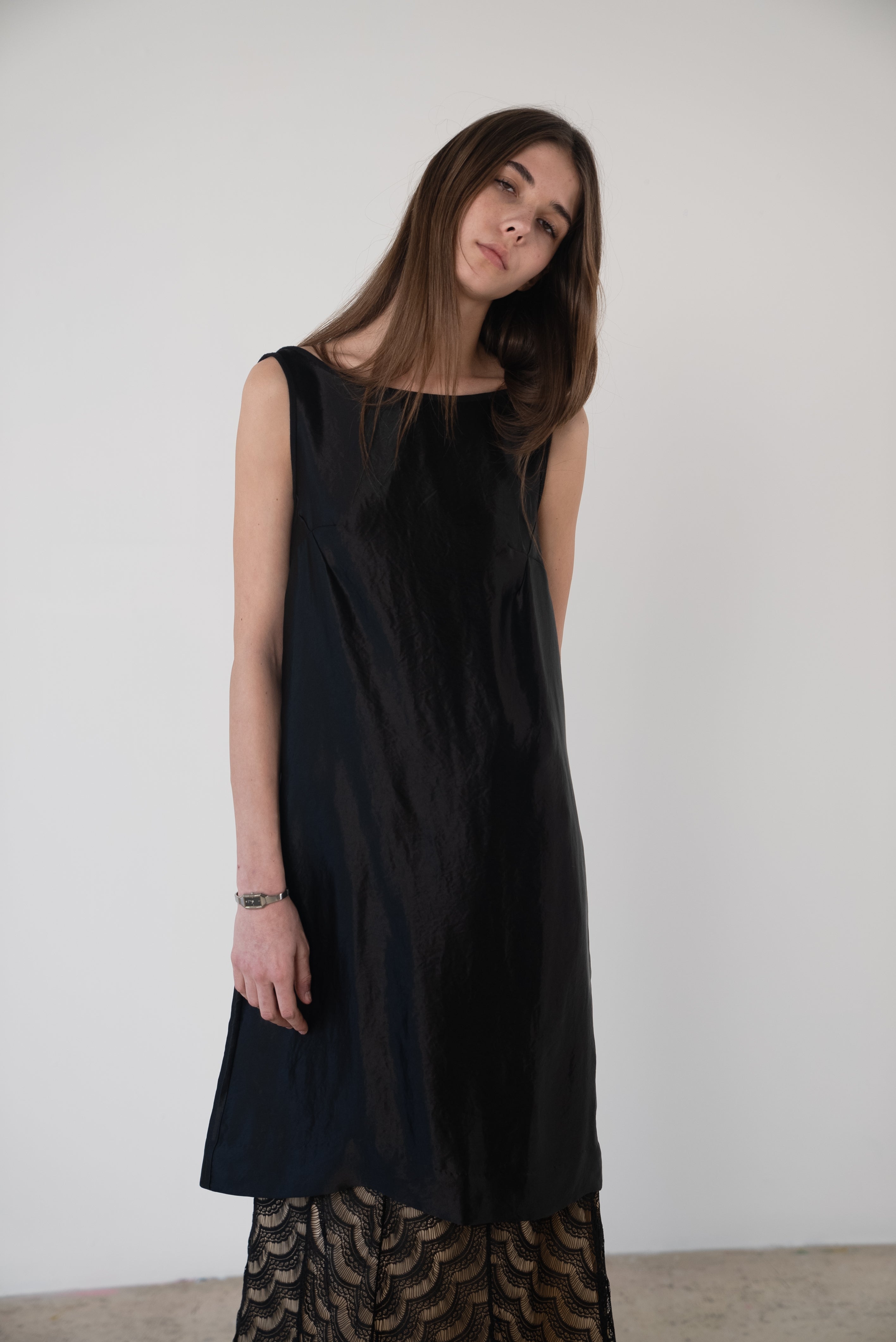 Description: A boatneck dress with a low cut back. Gather to your liking.