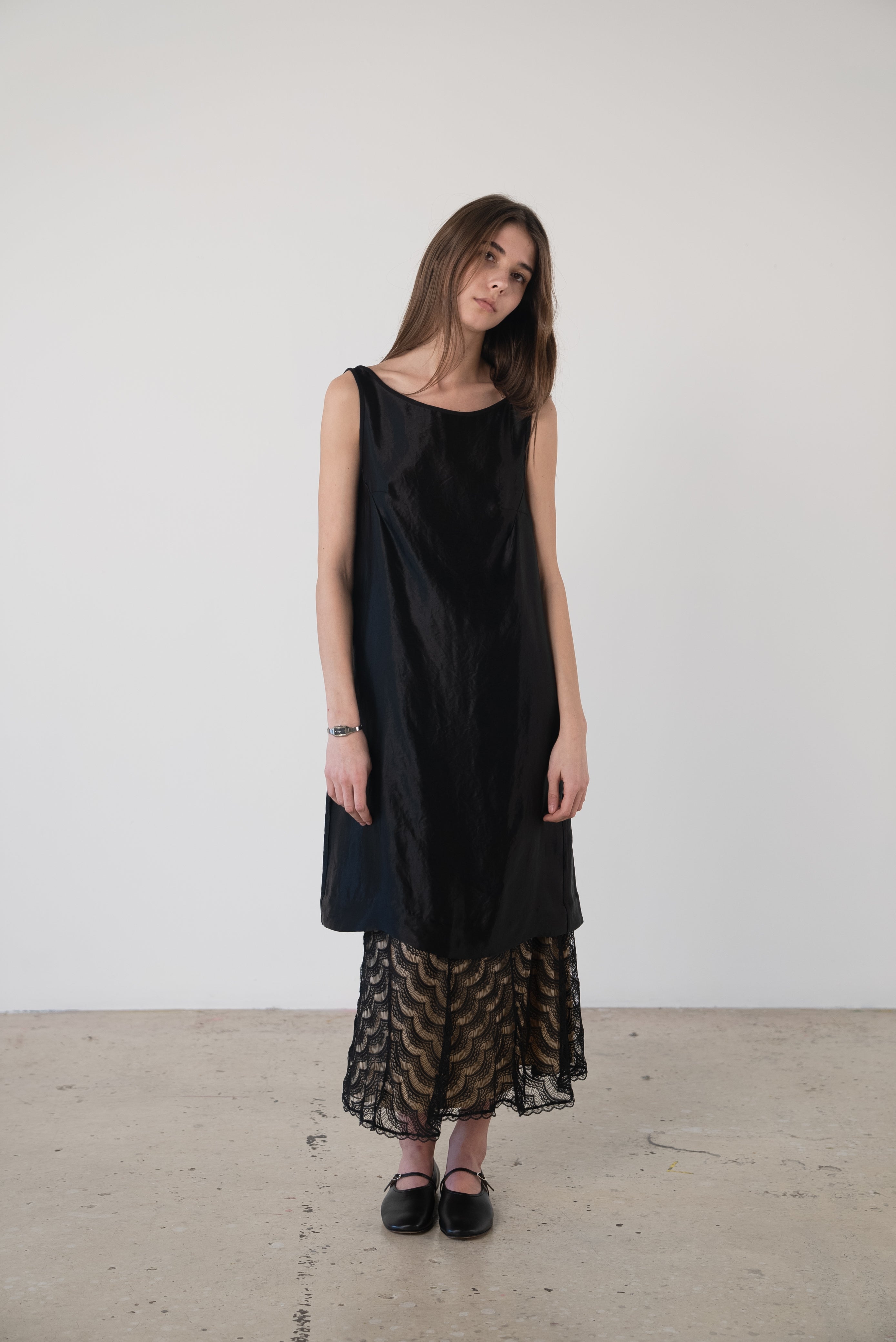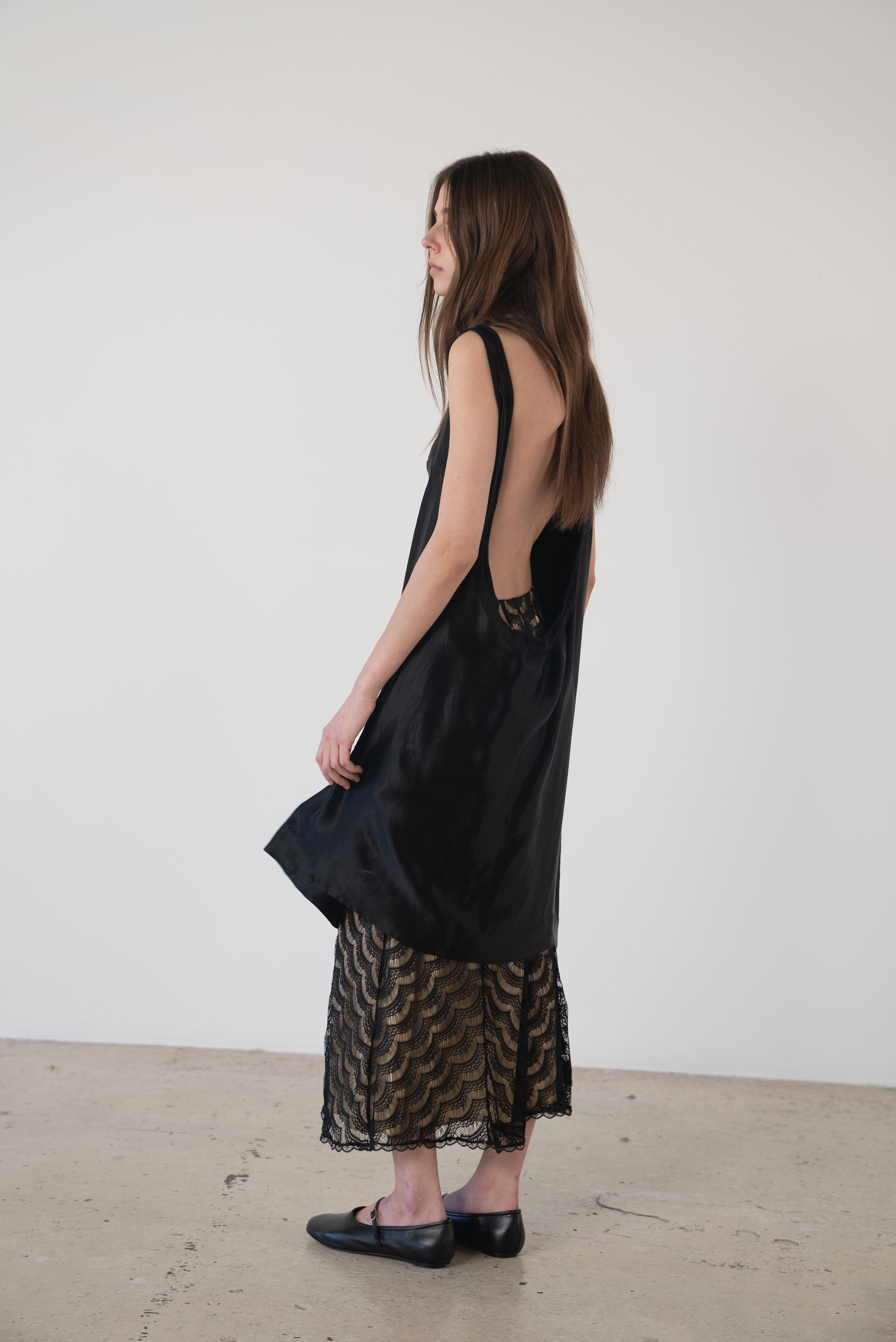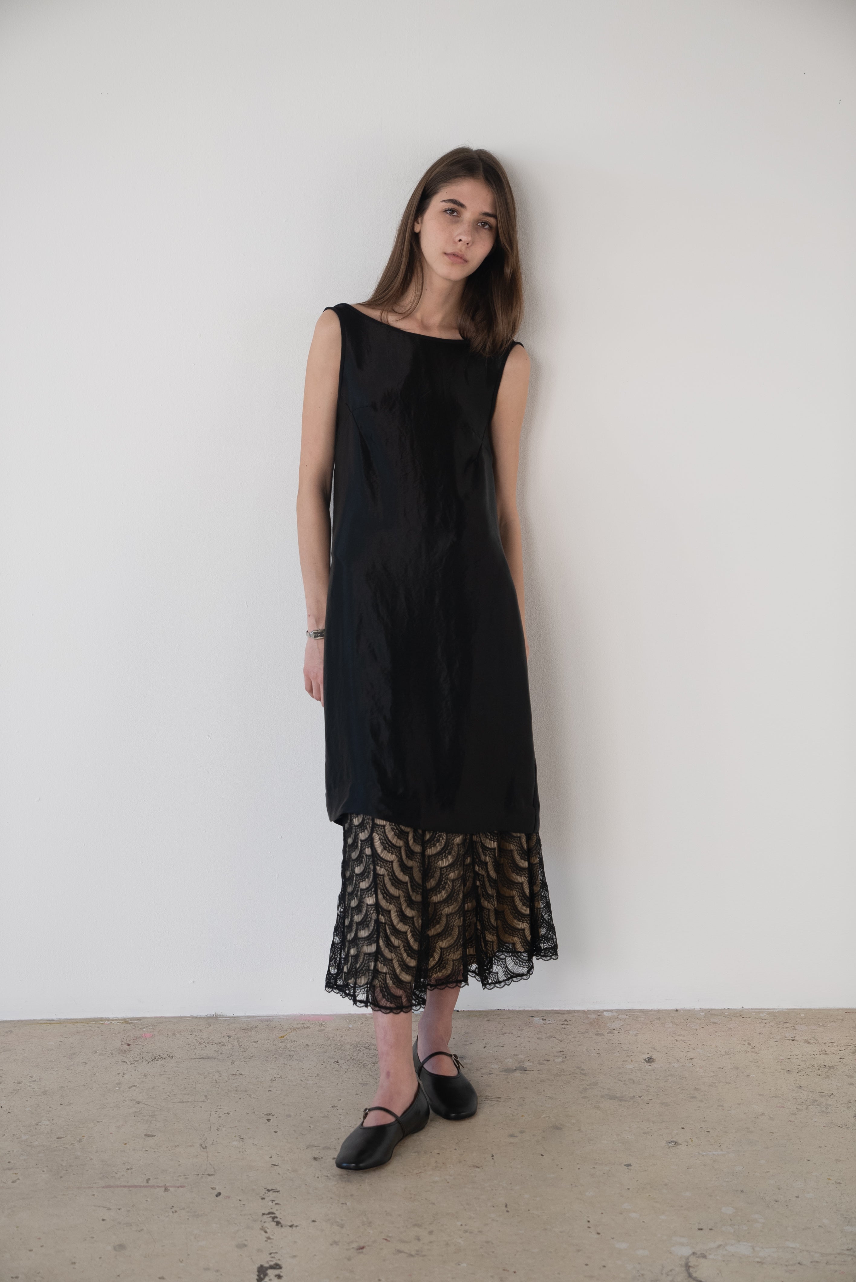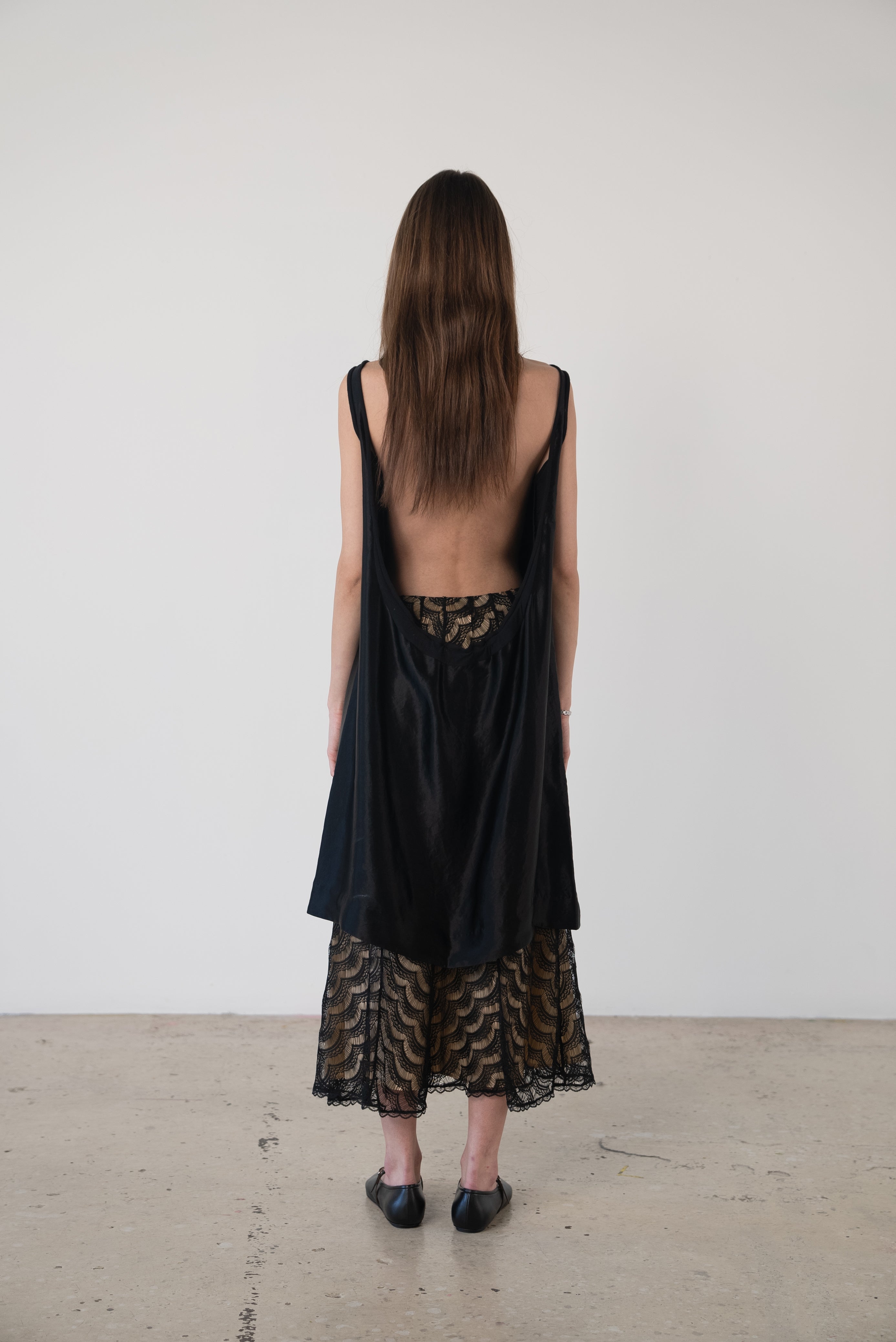 Description: A boatneck dress with a low cut back. Gather to your liking.