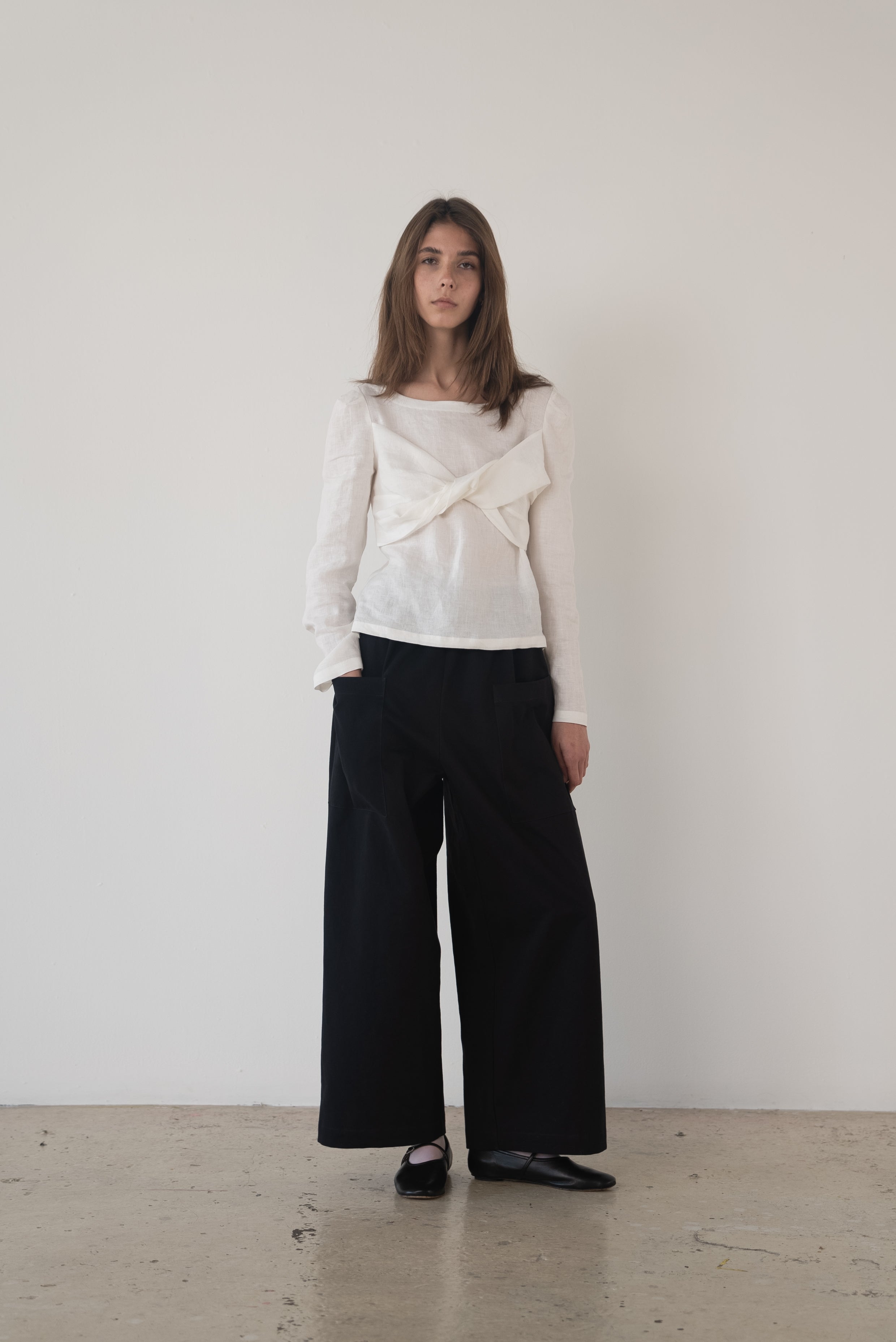 - Fit notes: Meant to be fitted at the waist but slouchy around the hips with a wide leg. Can be worn high or mid waisted.